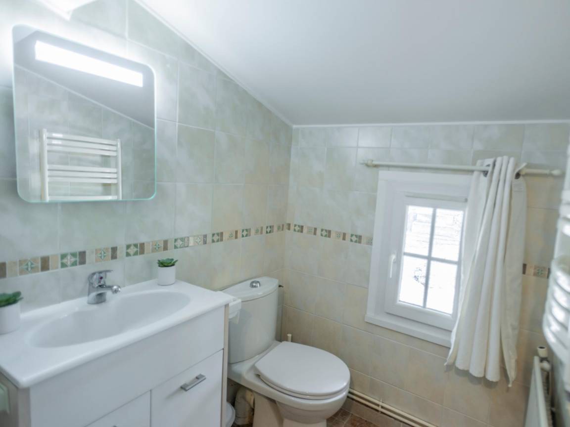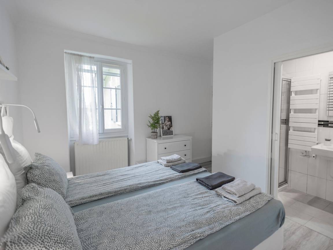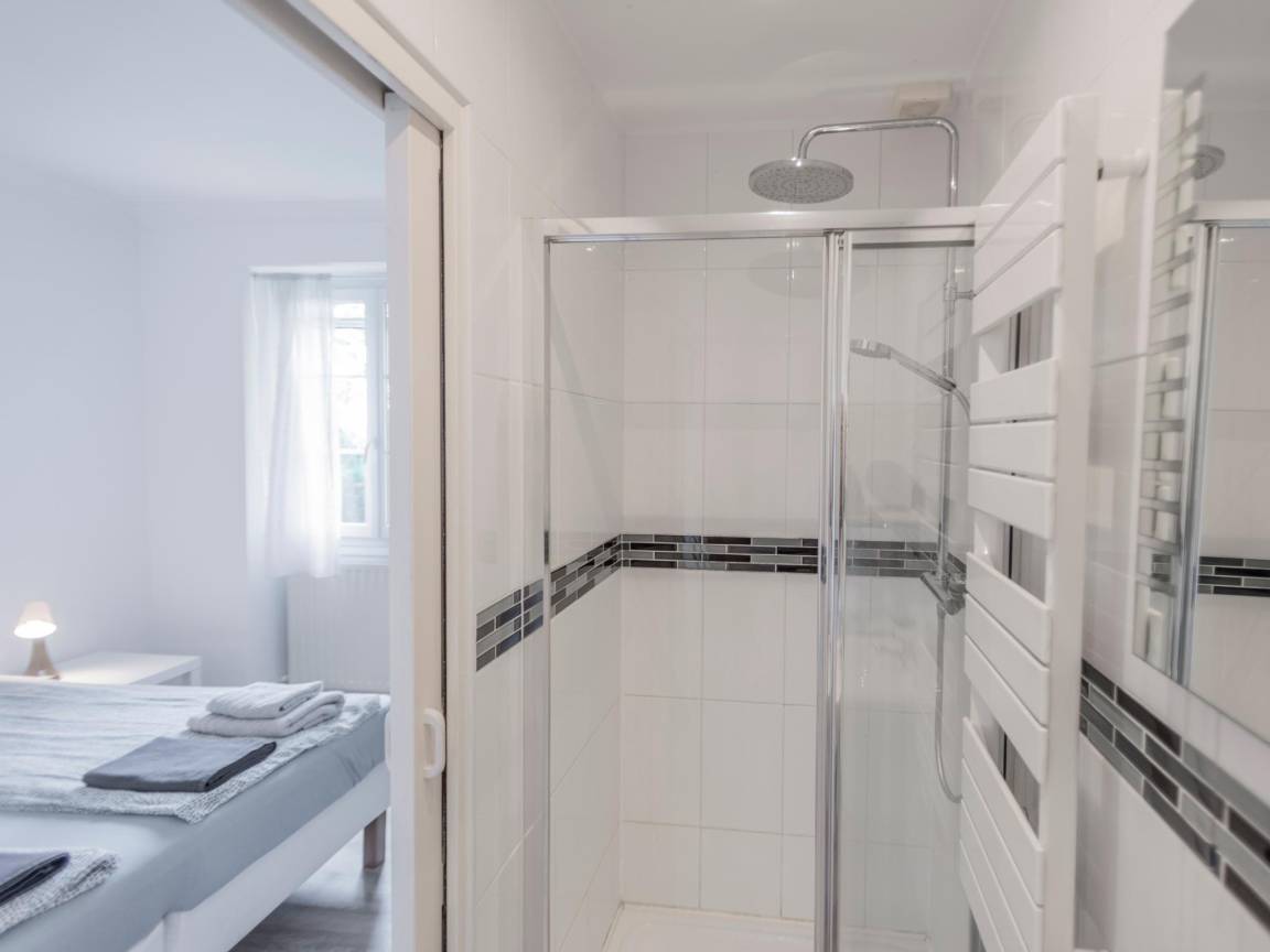Gästeunterkunft in der 1. Etage: Schlafzimmer mit Badezimmer mit Doppelbett(180 x 200 cm), Dusche, Waschbecken, Toilette
