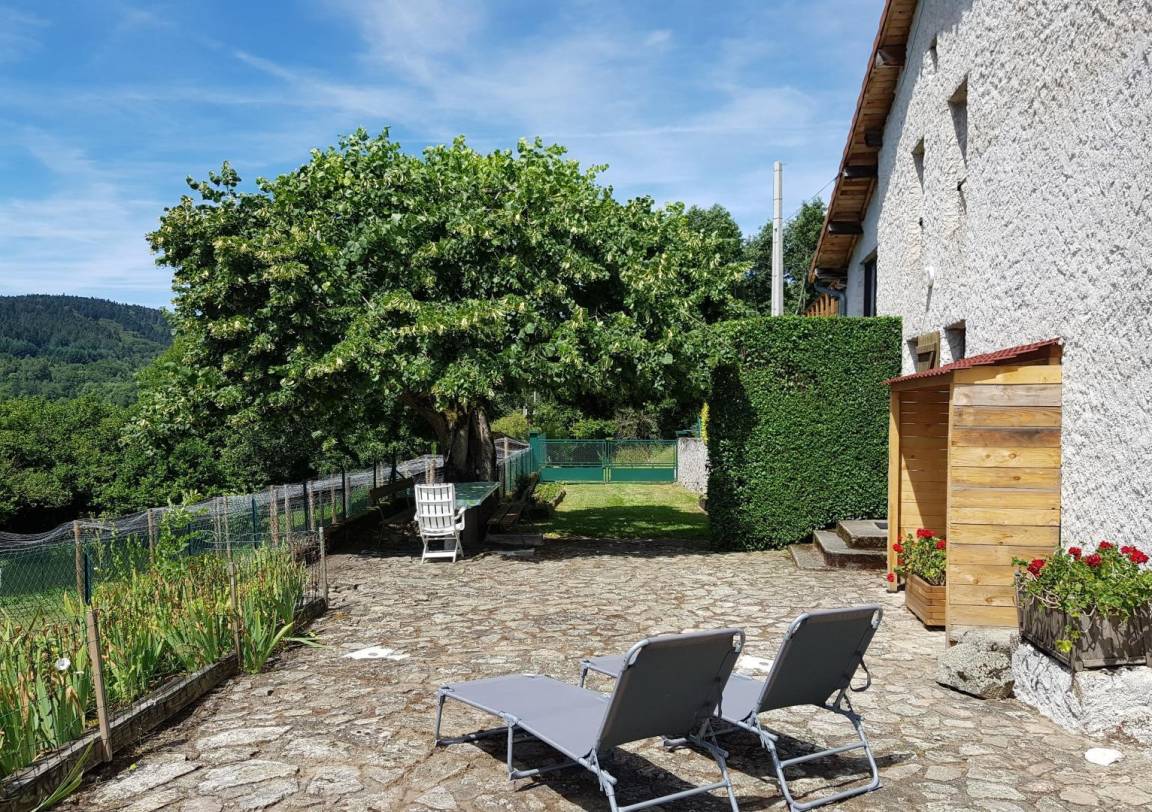 Nutzen Sie für Ihre Mahlzeiten den Schatten der Linde auf der Terrasse.