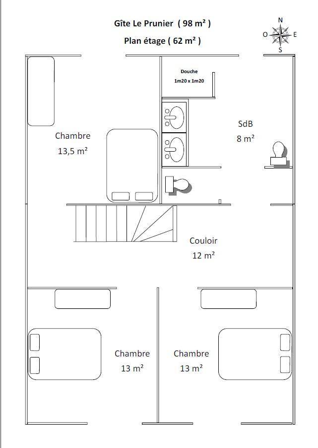 98 m² Gîte ∙ 3 Schlafzimmer ∙ 6 Gäste