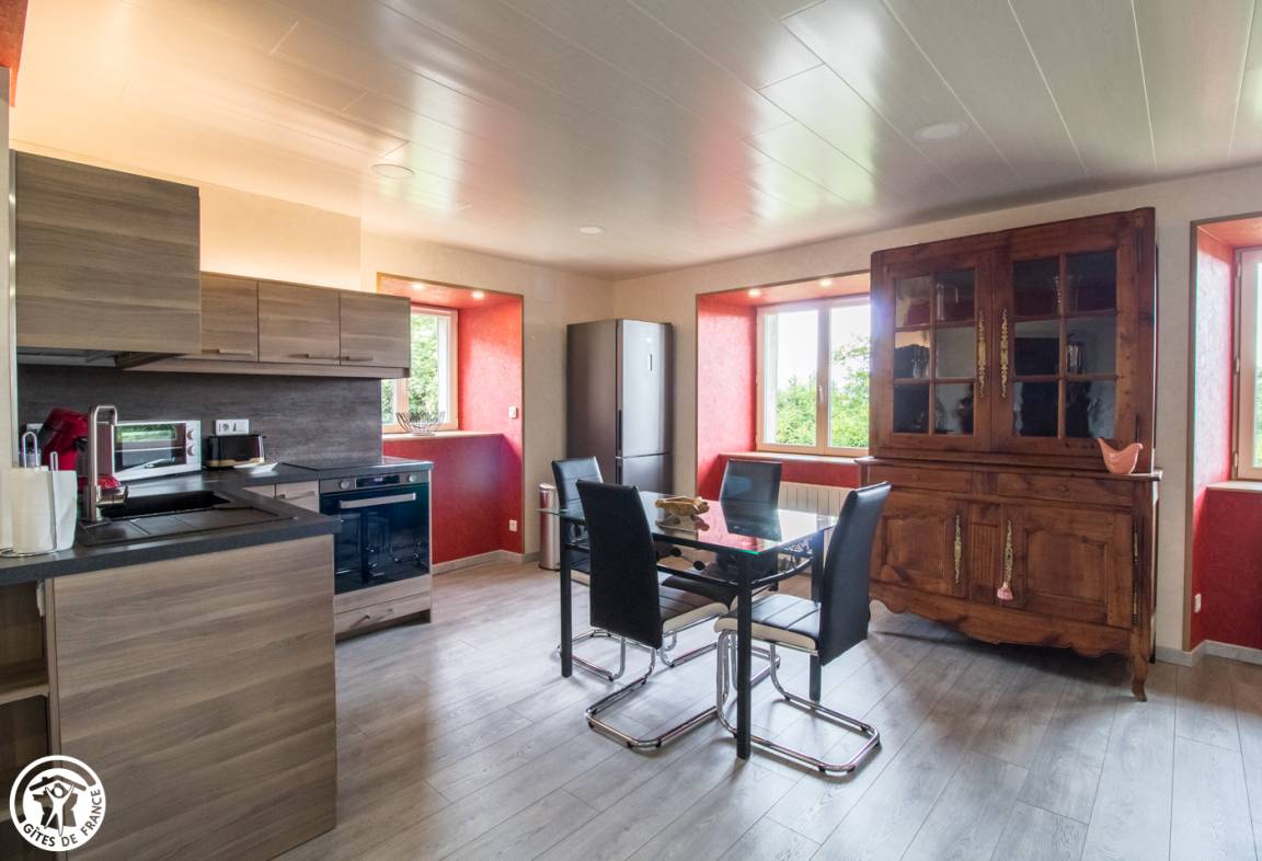 „Très beau gîte, lumineux, fonctionnel et spacieux avec un très bon confort. On se sent comme à la maison et nous avons beaucoup apprécié les cadeaux de Bienvenue; l’accueil des hôtes est très agréable. Nous sommes tombées sous le charme du magnifique panorama bucolique que nous voyons depuis le gîte et son grand jardin dans lequel nous avons dîné et nous nous sommes relaxées après de magnifiques randonnées. Nous recommandons vivement ce bel endroit.“