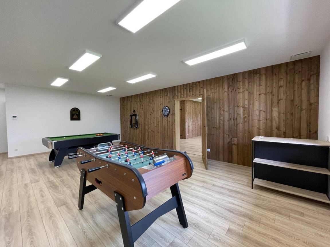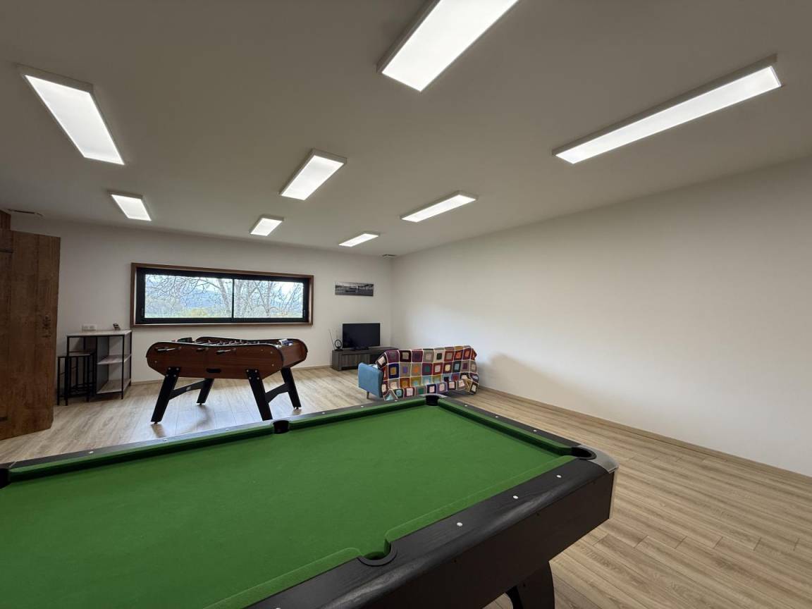 „Magnifique maison, très spacieuse et confortable avec tous les équipements décrits. De très nombreuses activités pour toute la famille: Piscine, pétanque, fléchettes, ping pong, billard, baby-foot, salle de sport. Accueil très chaleureux des propriétaires. Nous avons partagé de superbes moments en famille.“