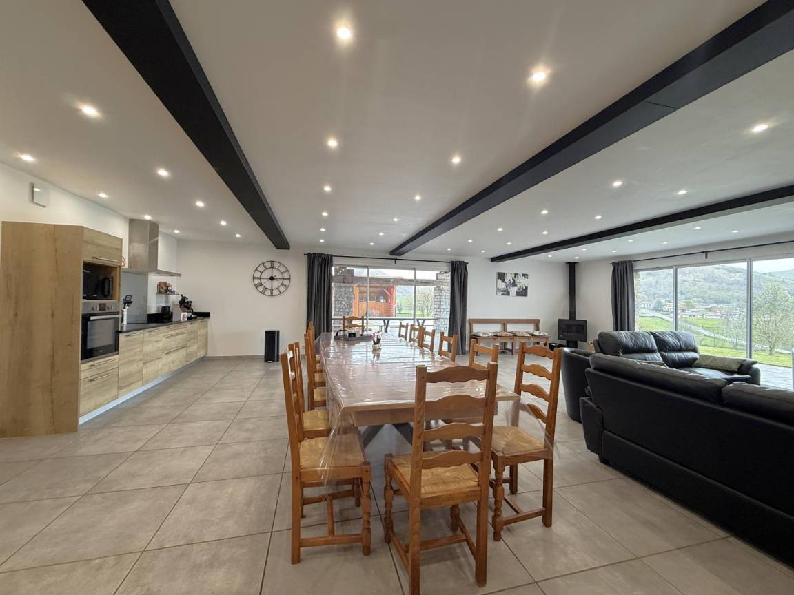 „Super séjour dans un gîte de charme superbe avec une vue exceptionnelle sur les montagnes. Une grande pièce à vivre où se retrouver et de l'intimité grâce aux chambres avec leurs propres salles d'eau et wc. Un cadre idéal pour passer de bons moments entre amis ou en famille. Une grande salle de sports et une salle de jeux pour s'occuper lorsque la météo ne permet pas d'être en extérieur. Des propriétaires très chaleureux et à l'écoute de leurs locataires. Une adresse que l'on recommande vivement.“