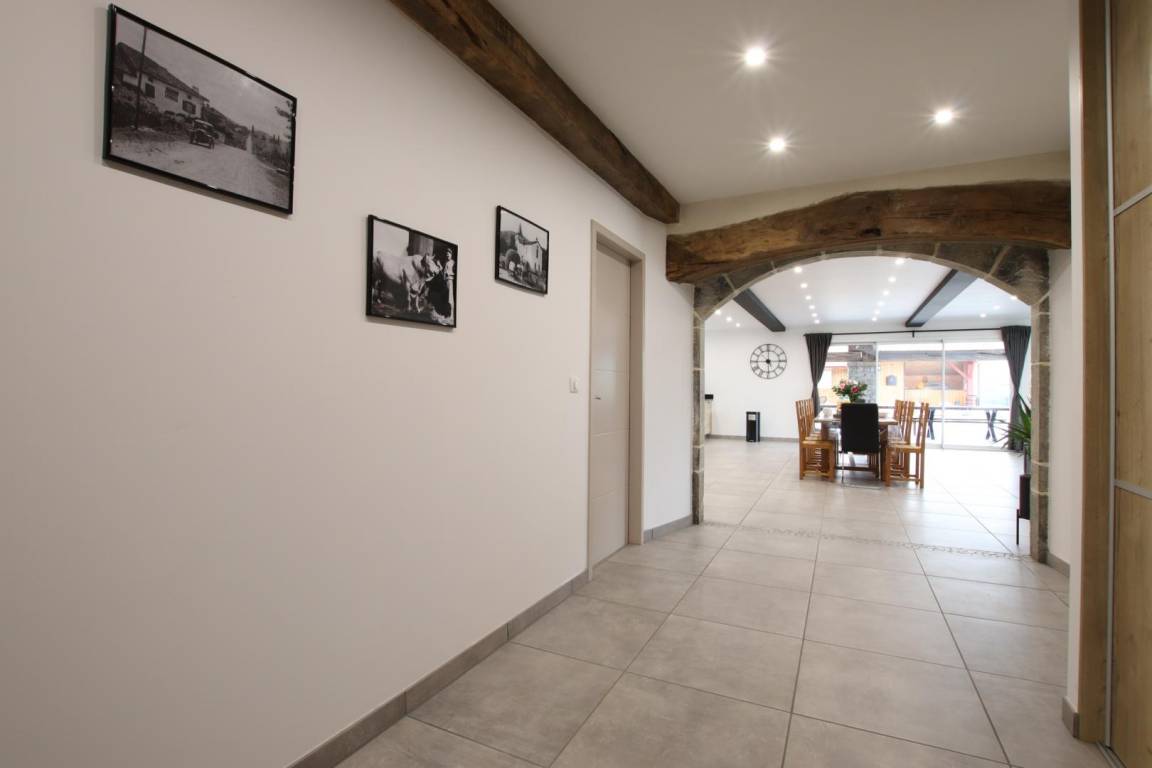 „Superbe grange refaite à neuf, tout confort, des pièces de vie très spacieuses, des chambres toutes très confortables avec leur propre salle de bain, une très belle salle de jeu, une propriétaire très sympa, une région extraordinaire.. .tout est parfait!“
