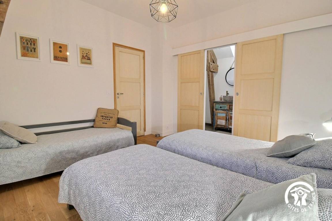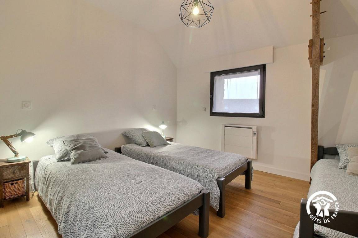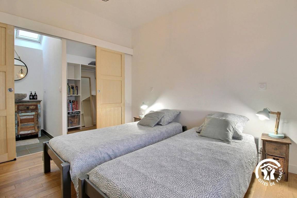 - Schlafzimmer mit drei Einzelbetten (80 x 190 cm) + Ankleidezimmer + Duschbad en suite.