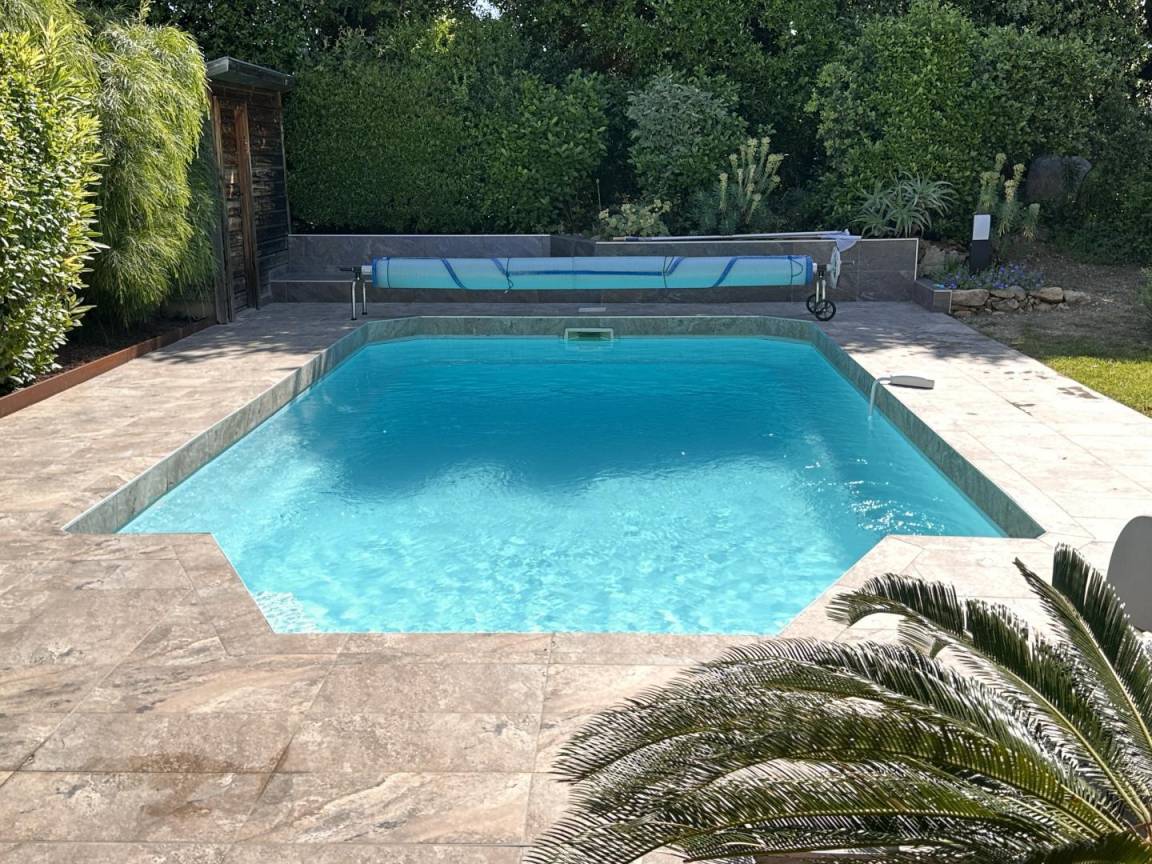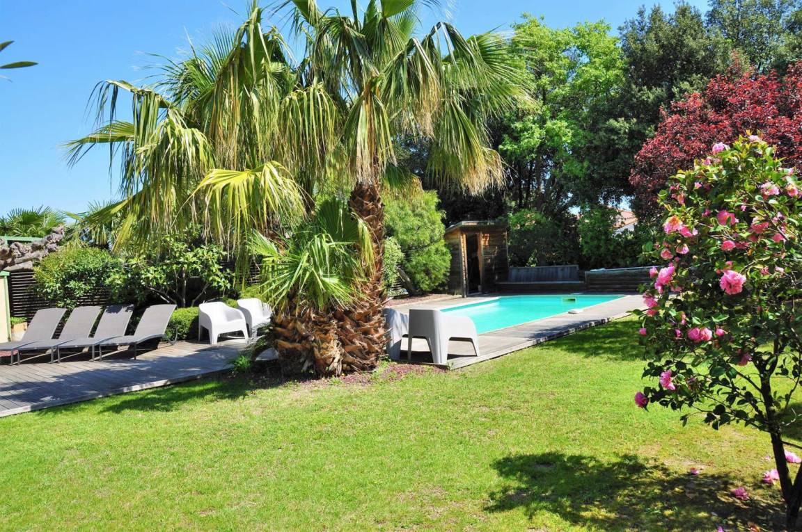 Der private Swimmingpool (mit optionaler Wärmepumpenbeheizung in der Übergangszeit) und der Garten laden zum Entspannen ein.
