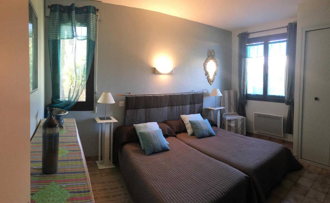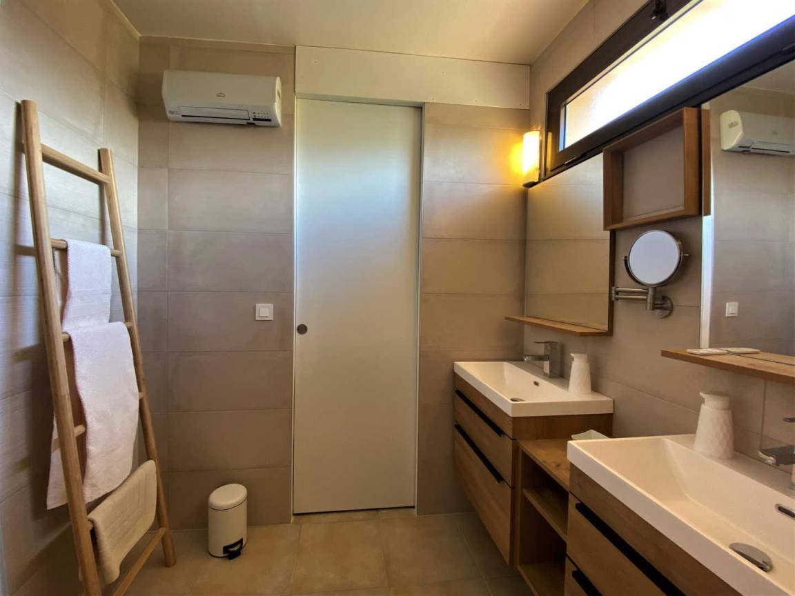 - Zwei Schlafzimmer (1 Doppelbett, 2 Einzelbetten) mit gemeinsamem Duschbad, 2 WCs.