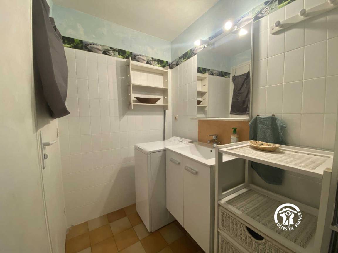 It Geschirrspüler, Mikrowelle und Gefrierschrank sowie Essbereich mit Wohnzimmer (TV). Über wenige Stufen gelangt man auf eine 70 m² große, teilweise umzäunte Terrasse mit Gartenmöbeln, Grill, Terrassenmöbeln und Sonnenliegen. Ein Schlafzimmer mit Doppelbett (140 x 190 cm). Ein weiteres Schlafzimmer mit zwei Einzelbetten (90 x 190 cm) und direktem Zugang zur Terrasse (über wenige Stufen). Duschbad mit WC. Der Internetzugang ist in dieser Gegend unzuverlässig: ideal, um abzuschalten und die Natur in vollen Zügen zu genießen. Privater Parkplatz etwas abseits der Straße, in der Nähe des Ferienhauses.