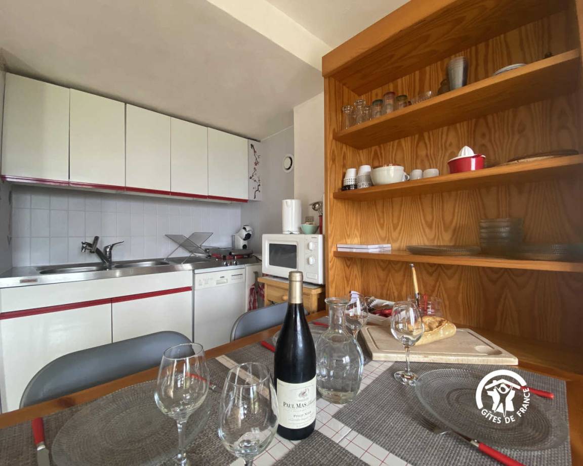 Hoch oben in den Albères-Bergen gelegen, mit Panoramablick über die Roussillon-Ebene, ist dieses Ferienhaus ideal für einen entspannten Urlaub mit Familie oder Freunden. Nur wenige Kilometer vom Zentrum des charmanten Dorfes Laroque des Albères entfernt, bietet diese Oase der Ruhe zahlreiche Aktivitäten und Entdeckungsmöglichkeiten. Erkunden Sie von hier aus die Wanderwege, die sich durch die herrliche Landschaft der Albères schlängeln. Nur 300 Meter entfernt, im Domaine des Albères, genießen Sie freien Zugang zum Schwimmbad (geöffnet von Mitte Juni bis Mitte September) und zum Tennisplatz. Entdecken Sie Collioure, eine Stadt, die für ihre farbenfrohen Gassen, das Königsschloss und ihre Strände bekannt ist. Dieses Erdgeschossapartment im Haus des Eigentümers bietet atemberaubende Ausblicke von der Terrasse und einen separaten Eingang. Es ist über eine Außentreppe vom reservierten Parkplatz aus erreichbar und bietet allen Komfort für einen angenehmen Aufenthalt. Ferienhaus: Kochnische m