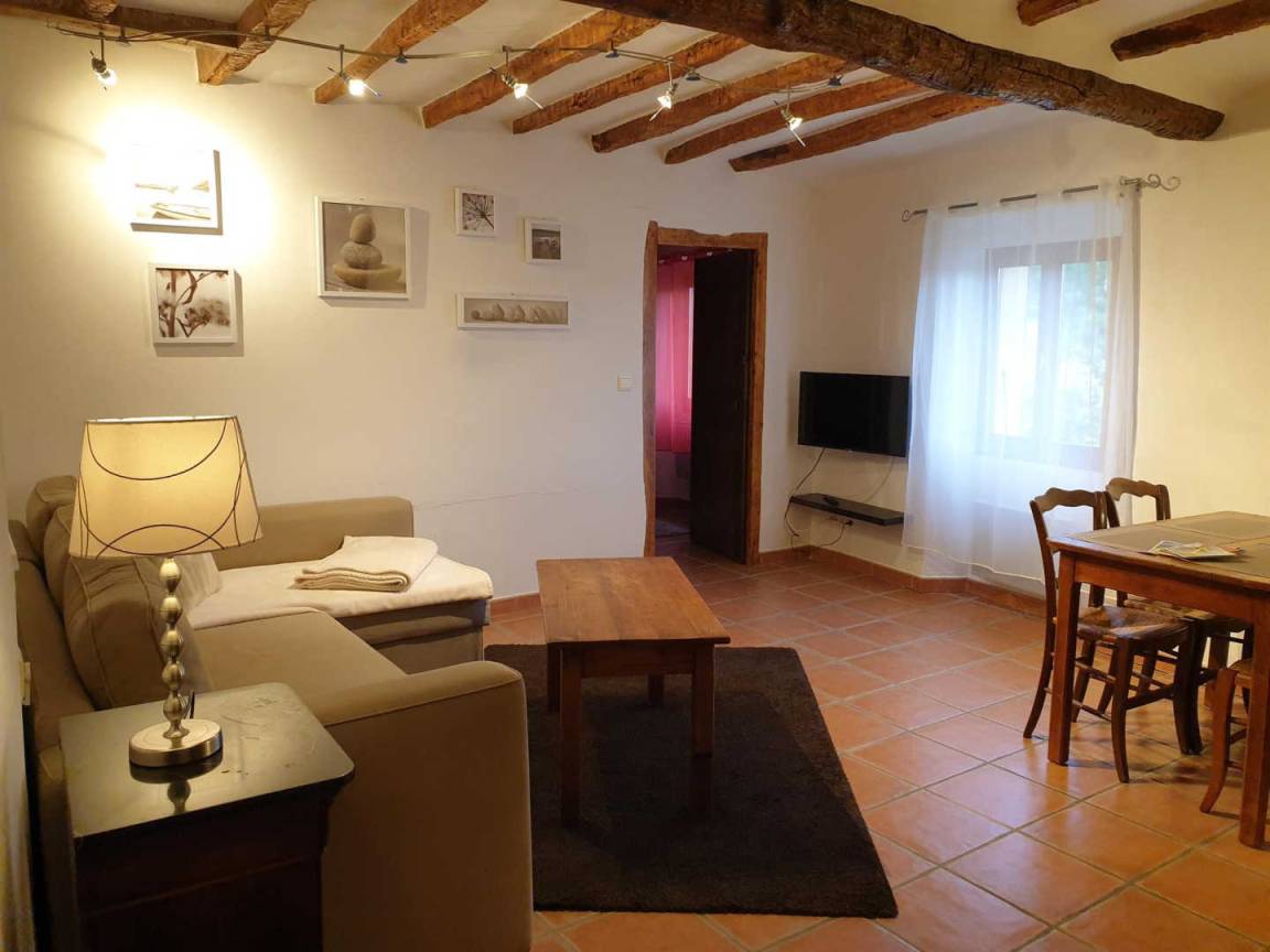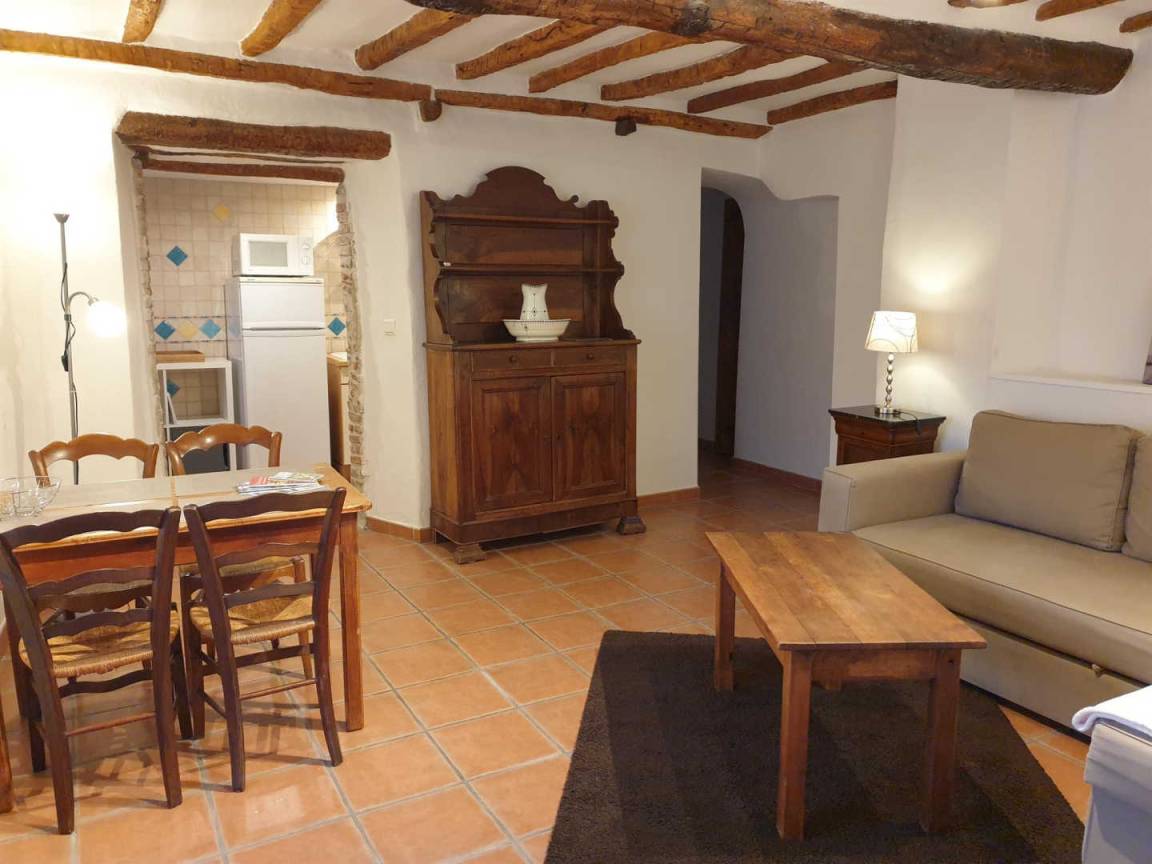 „Très bon accueil. Appartement correspondant bien aux photos, décoré à l'ancienne (nous adorons) mais avec le confort moderne malgré tout, très propre, très calme car très peu de véhicules circulent, avec vue sur le jardin et la piscine. Très beau village avec les commerces nécessaires, en faire le tour à pied dans les petites ruelles est vraiment agréable. Vacances très apaisantes. Prix plus que correct.“