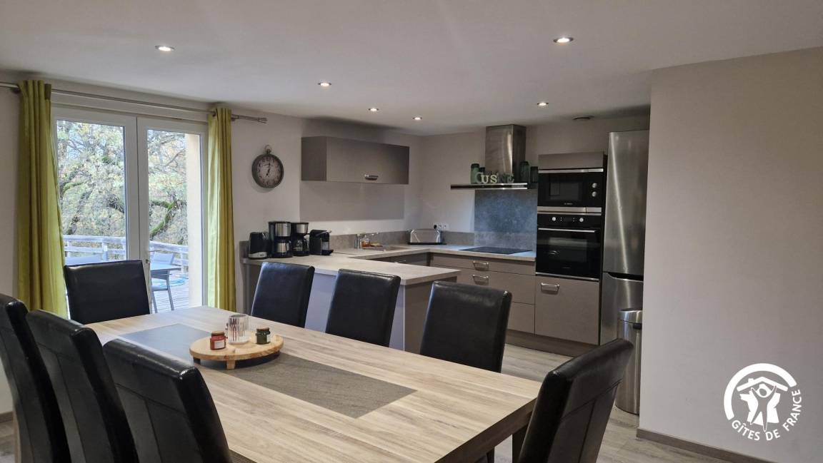 „Gite fonctionnel et très bien équipé dans 1 secteur très agréable environnement du gite très désordonnémanque de disponibilité des propriétaires très sympathiques et à l'écoute mais débordés par l'activité FA et animation (brame du cerf) bilan: Nous garderons 1 très bon souvenir de ce court séjour et félicitations au cuisinier de la FA et à toute son équipesuggestions: Sécurité piscine? ? salles d'eau de 2 chambres à actualiser? ?“