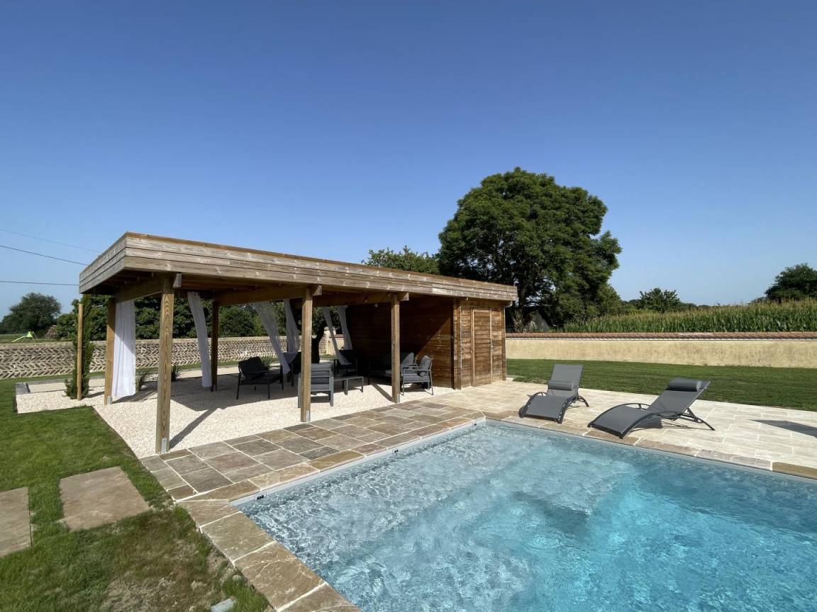 Unabhängiges Ferienhaus in der alten Kiesscheune. Großes eingezäuntes Schwimmbad (12 m x 6 m).