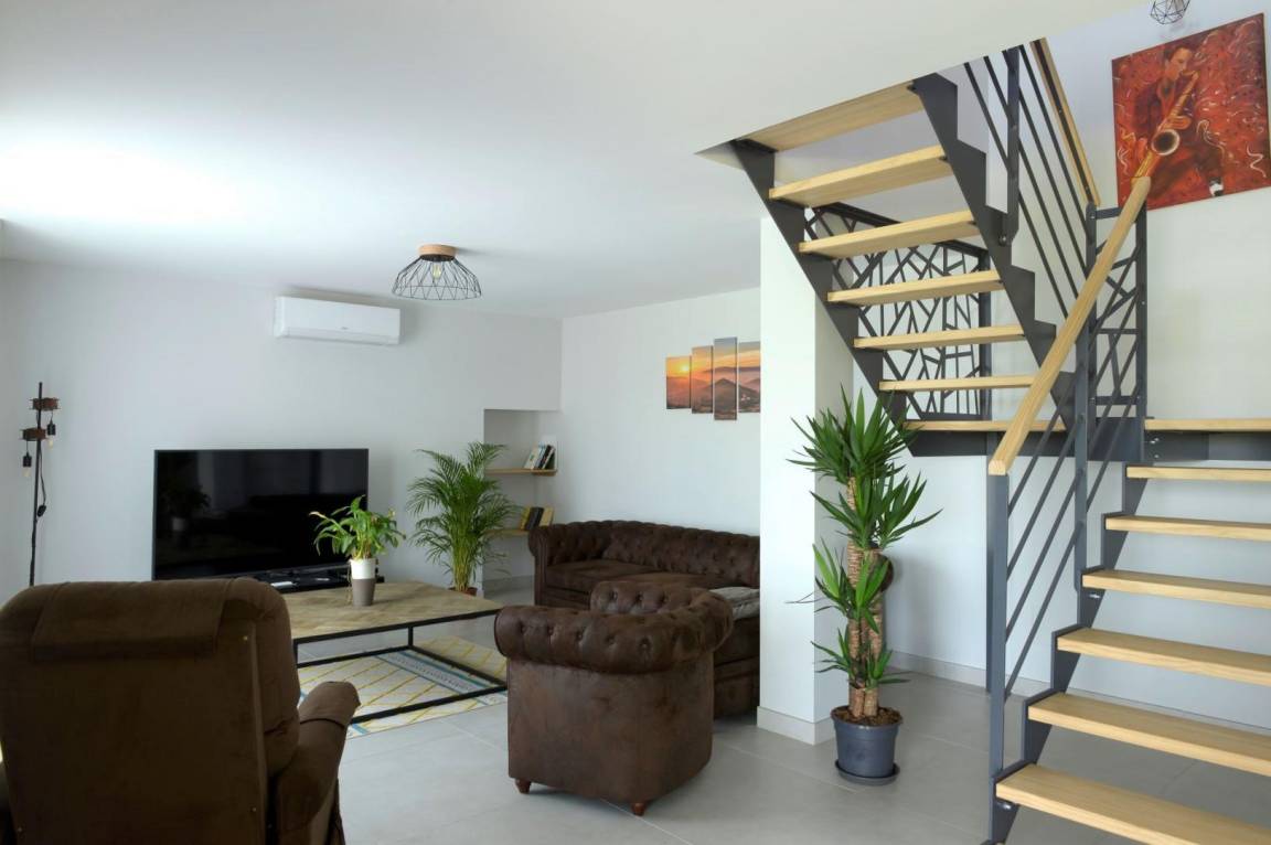 Wohnzimmer (großer Flachbildfernseher, Canal+-Abonnement, Bluetooth-Lautsprecher und CD). Internetanschlussbox 4 G gute Geschwindigkeit im WLAN. Eckleiste.