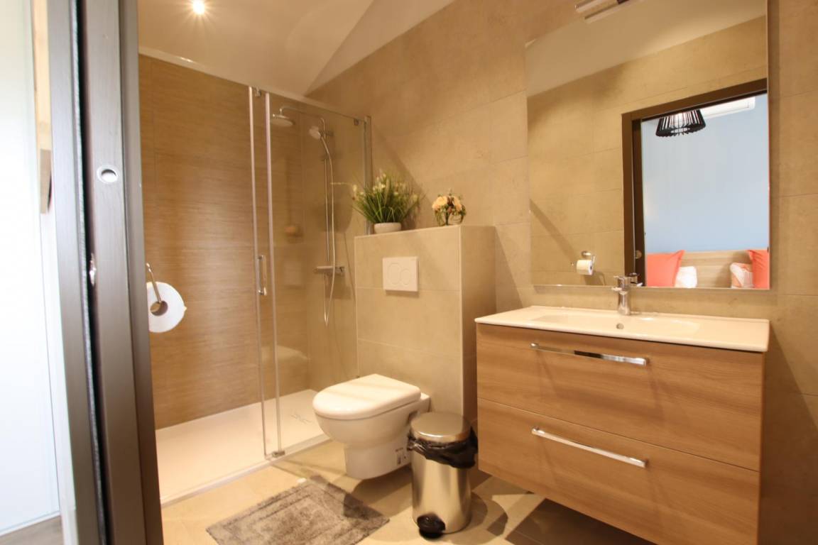 Obergeschoss: 2 Schlafzimmer, jedes mit eigenem Badezimmer (Dusch
