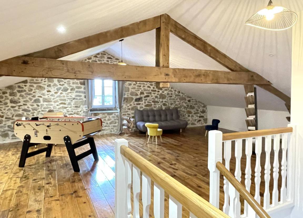 - Entspannungsbereich im Zwischengeschoss, Spielzimmer (Tischfußball). Babyausstattung.