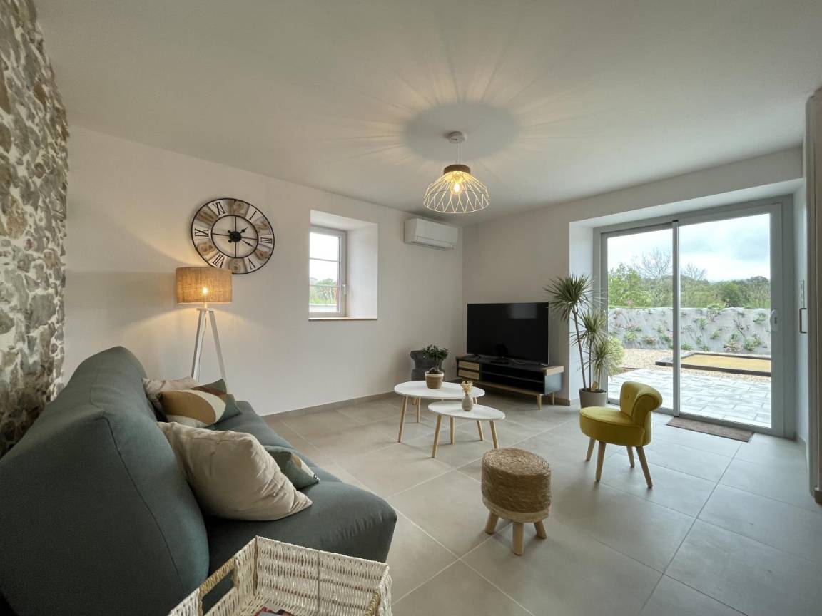 Wohnzimmer (großer Flachbildfernseher, Canal+-Abonnement, Bluetooth-Lautsprecher und CD). Internetanschlussbox 4 G gute Geschwindigkeit im WLAN. Eckleiste.