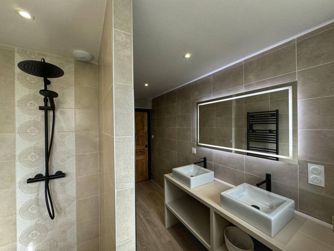 Auf den Etagen insgesamt, verteilt auf die beiden Gîtes: 5 Schlafzimmer (2 140x190 Betten, 4 90x190 Betten, 1 160 Betten). 4 Duschen und 5 Toiletten.
