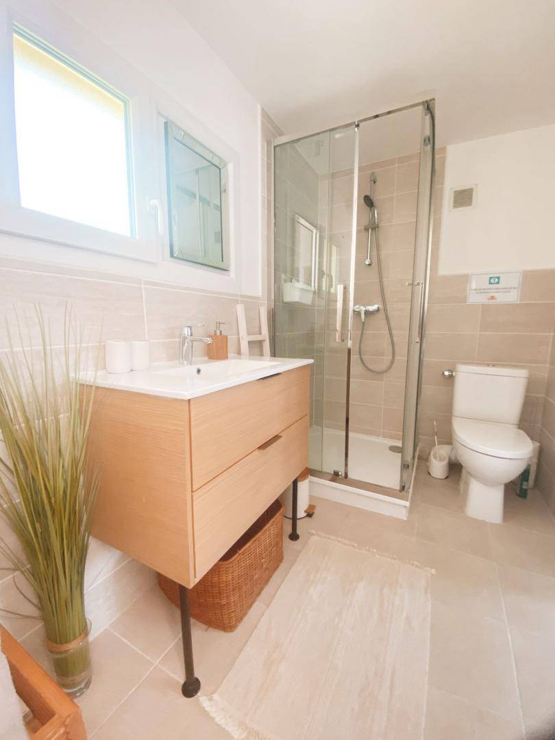 Gartenmöbel und Tisch, Liegestühle, Gasgrill, Privatparkplatz. Bezogene Betten bei Ihrer Ankunft. Möglichkeit, Handtücher zu mieten. Elektroheizung in Ergänzung.