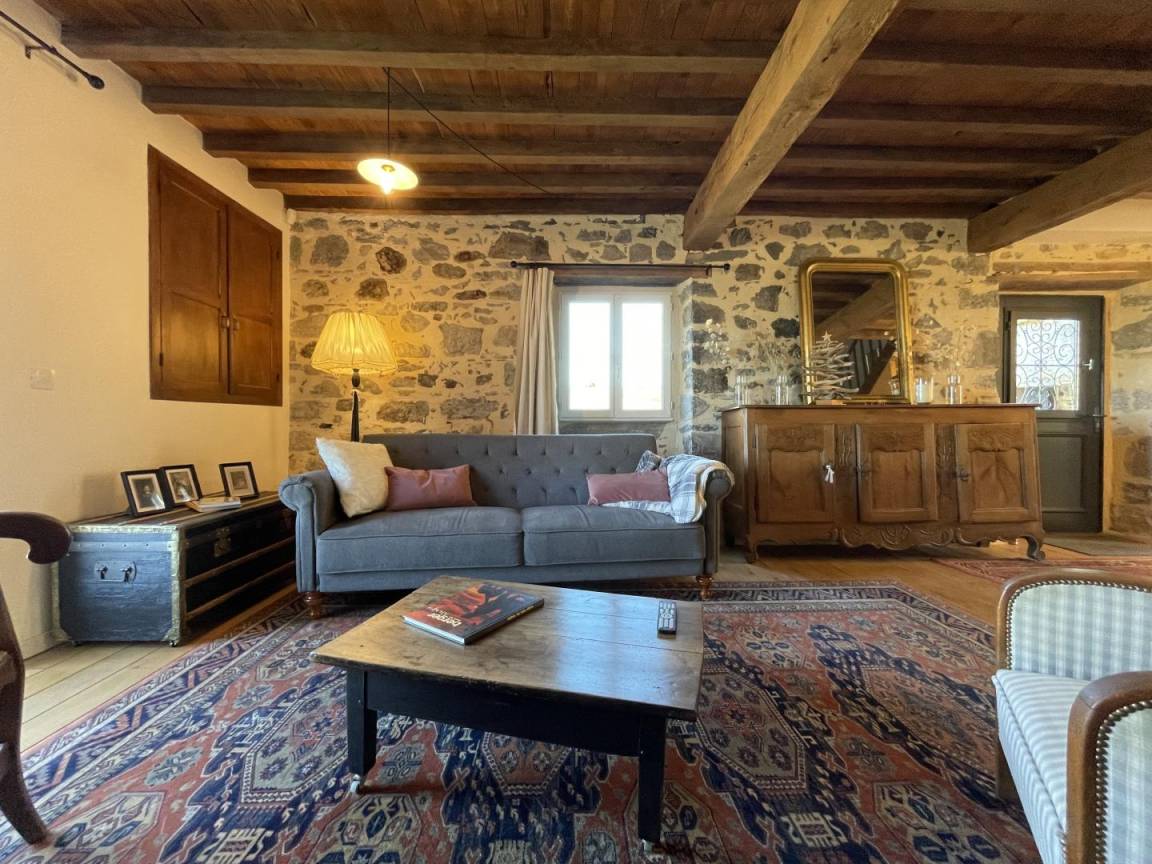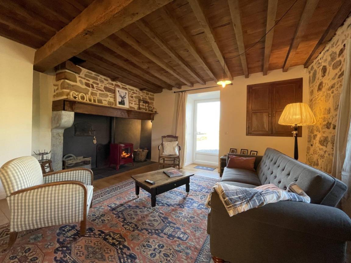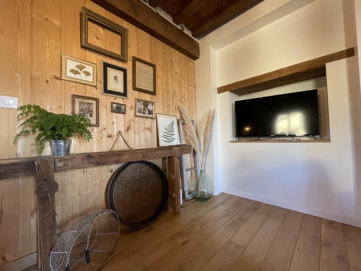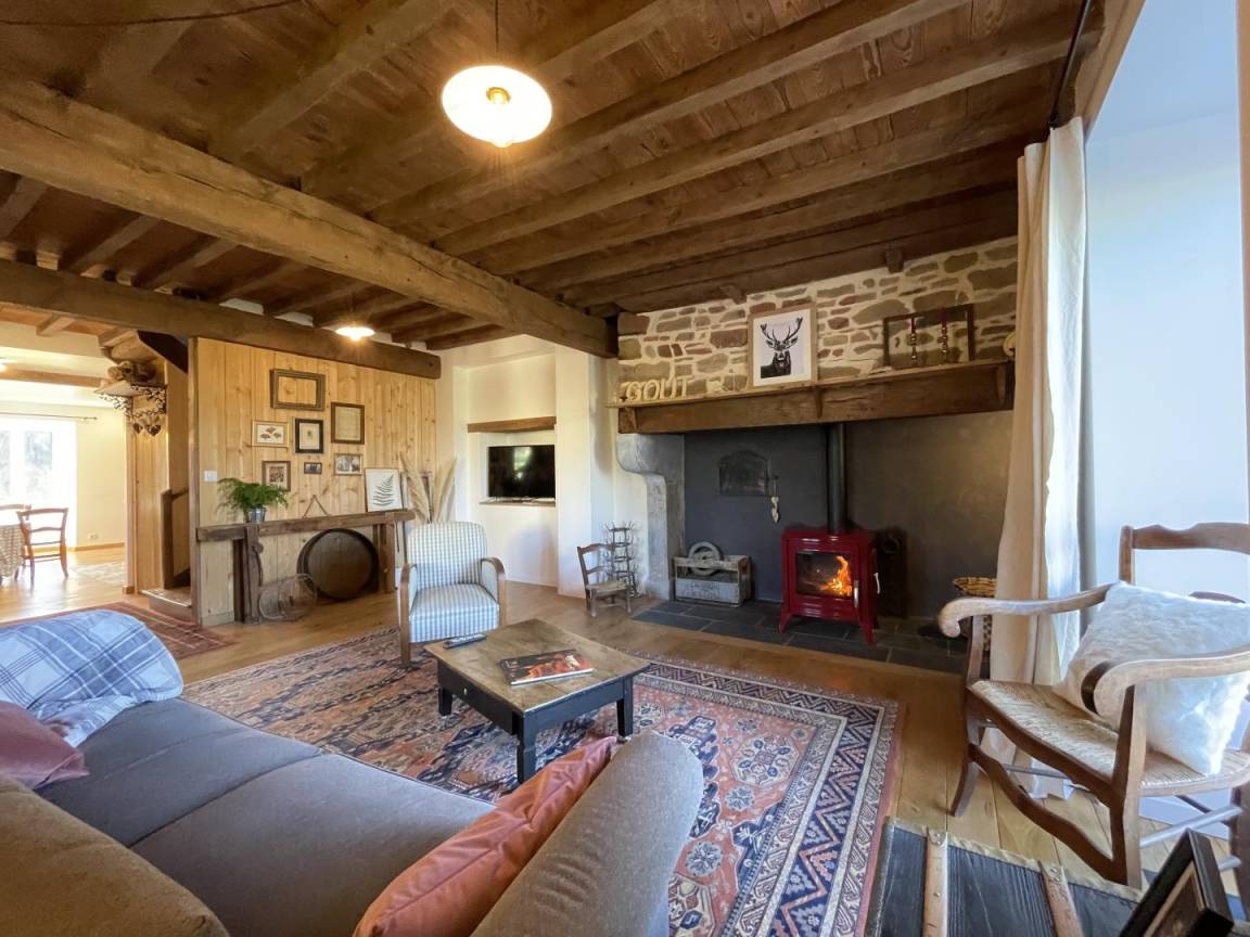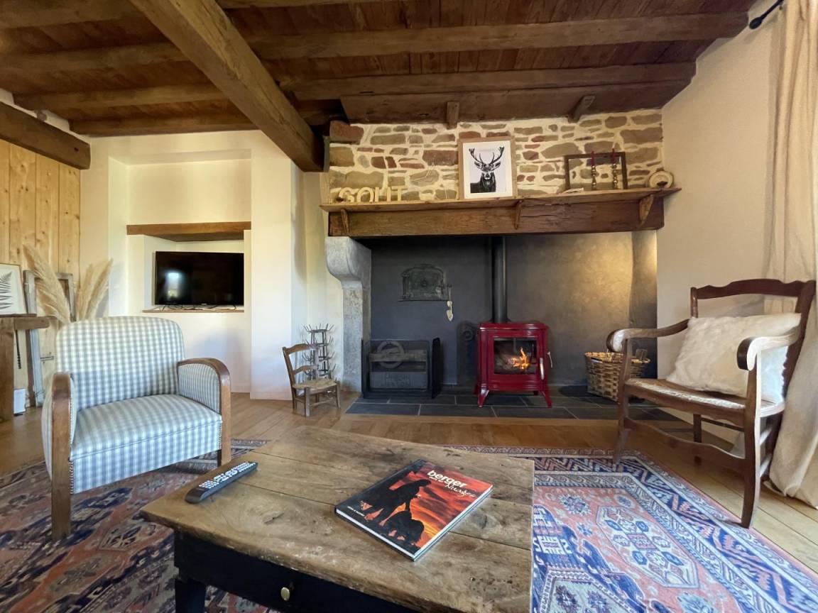 -ein Wohnzimmer (Holzofen, TV, 5G-Internetbox in Wifi (Telearbeit).