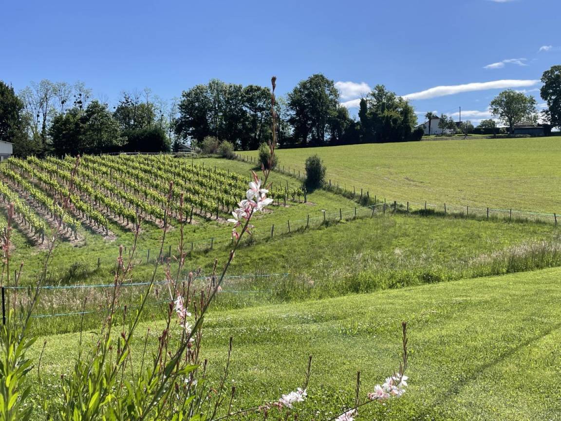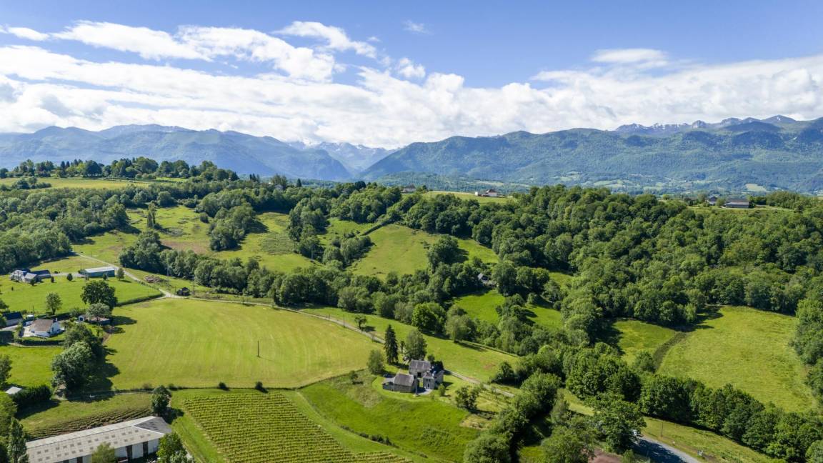 Einfamilienhaus mit Nebengebäuden, privater Besitz von mehreren Hektar Wiesen (Pferde vor Ort), mit Blick auf Weinberge, in der Region AOC Jurançon (Weißwein).