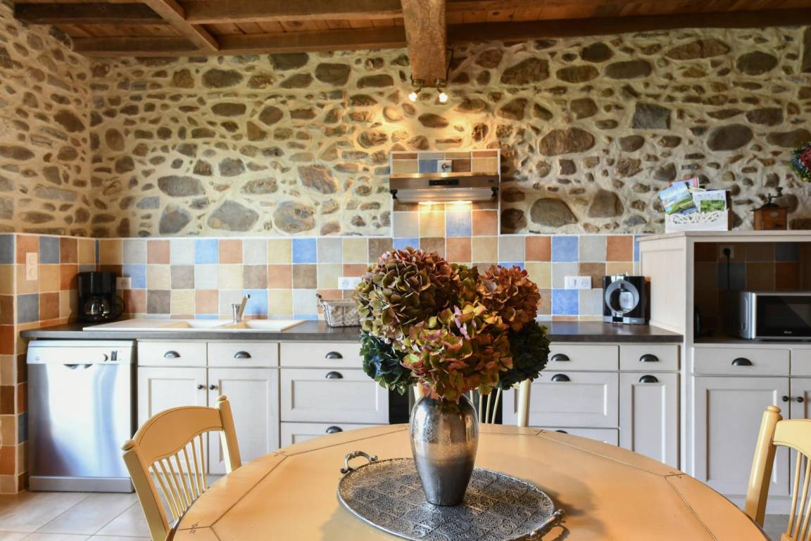 In einer grünen Umgebung liegt dieses unabhängige Ferienhaus in der Nähe des Bauernhofs der Eigentümer (Kühe, Pferde) auf einem 17 Hektar großen Grundstück mit biologischer Landwirtschaft (Wälder und hügelige Wiesen).