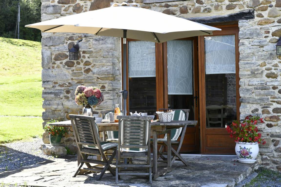 Nicht eingezäuntes Grundstück (Ihr Haustier muss beaufsichtigt werden). Ostterrasse (schöne Aussicht auf das Dorf), Gartenmöbel, Grill. Privater Parkplatz.