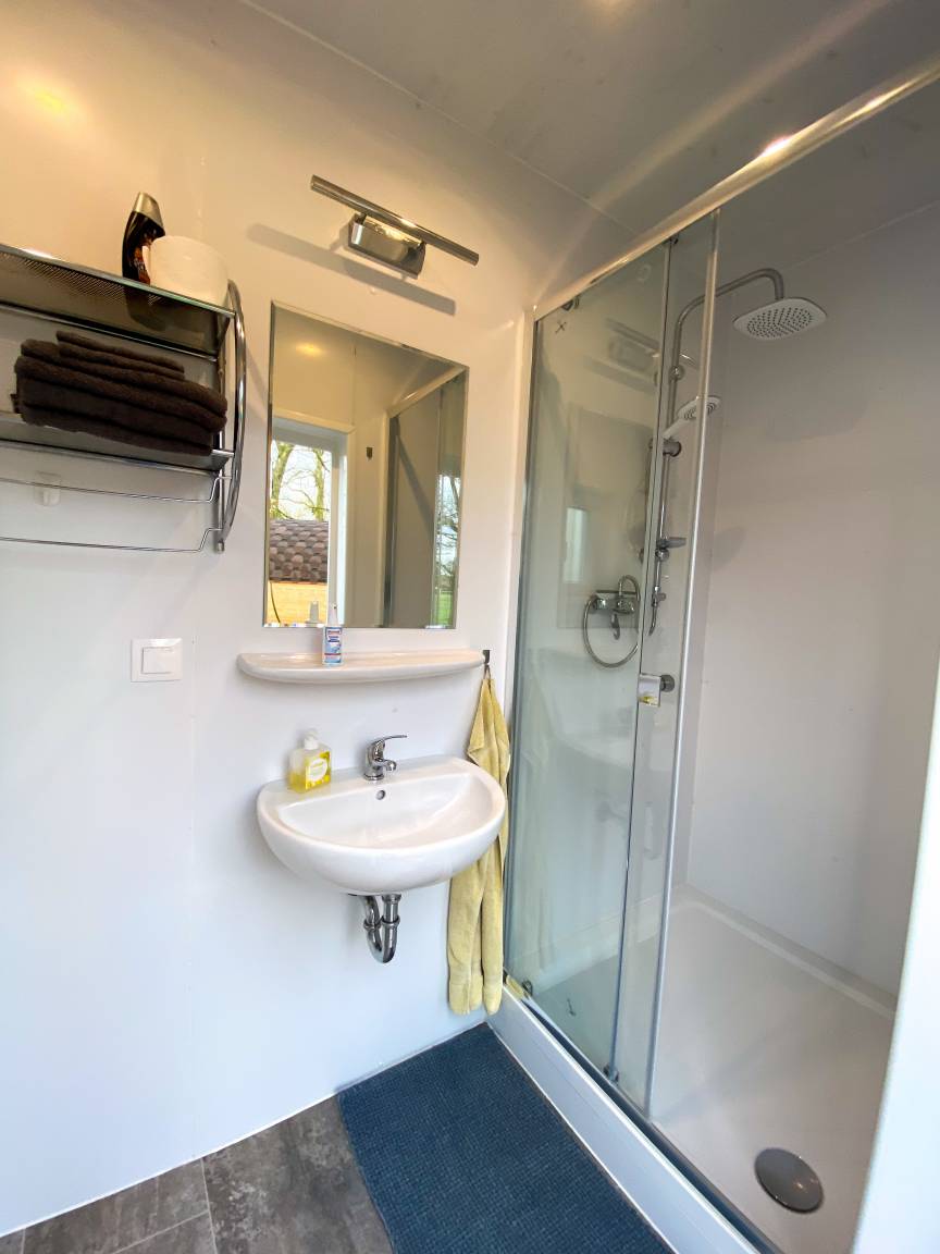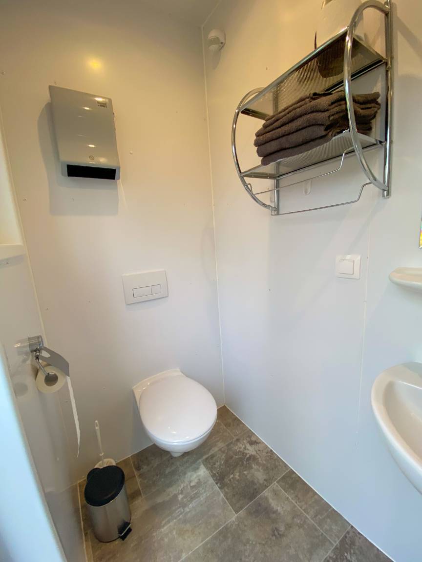 Jedes Fass hat seine eigene Sanitäranlage mit großer Dusche, WC und Toilette.