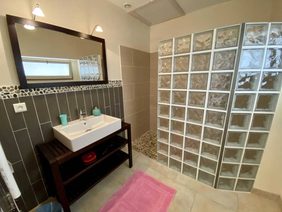 „Problème pour stationner la voiture à proximité du gîte. Manque un lave linge dans le gîte. Gîte confortable et agréable pour son jardin clos, sa piscine et son jacuzzi.“