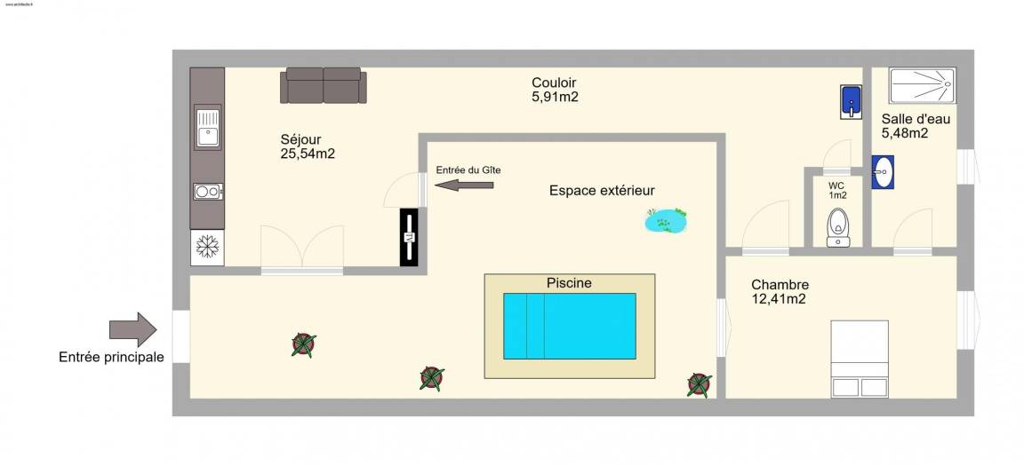 Gîte ∙ 1 Schlafzimmer ∙ 2 Gäste