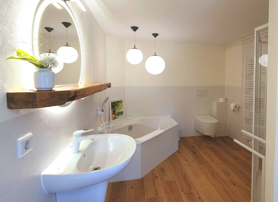 Im Badezimmer, inklusive einer Waschmaschine, machen Sie sich wieder fit für die nächsten Entdeckungen im Sachsenland. Eine große Terrasse steht Ihnen ganz allein zur Verfügung.