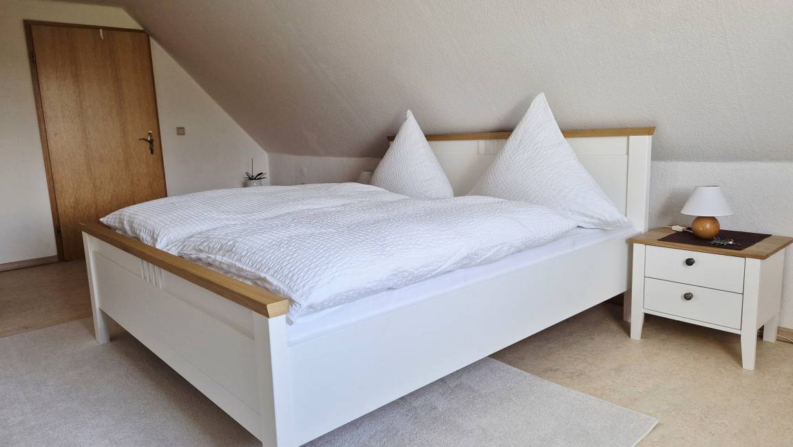 Es bietet Ihnen im Obergeschoß ein Schlafzimmer mit einem Echtholz-Doppel-Bett und ein Schlafzimmer mit zwei Einzelbetten. Ein Kinderstühlchen und ein Kinderbettchen ist ebenfalls vorhanden und bei Bedarf mit nutzbar. Des Weiteren ist eine Aufbettung möglich. In dem geräumigen Wohnzimmer im Erdgeschoß finden Sie, neben einem Flachbildschirm, DAB+ und Internet-Radio, BlueRay-Player, auch diversen Spielsachen und eine breite Auswahl an aktuellem Prospektmaterial. Die moderne Küche ist u.a. mit einem Geschirrspüler, einem Kühlschrank mit Gefrierfach, einem Vierplatten-Ceranfeld inkl. Backofen, einem Wasserkocher, einem Toaster und einer Kaffeemaschine ausgestattet.