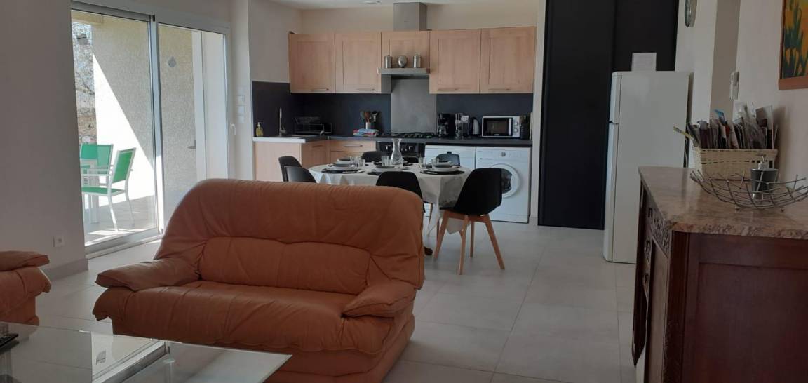 „Pour des vacances au calme et malgré tout proche des commerces Gite agréable avec une belle vue et une terrasse ensoleillée“
