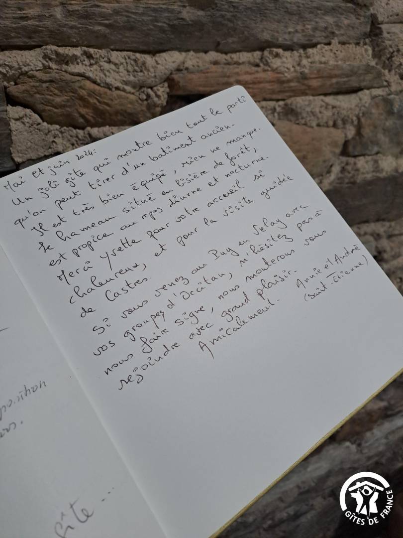 „Un joli gîte très agréable et bien équipé qui montre bien tout le parti que l'on peut tirer des bâtiments anciens, situé en lisière de forêt c'est un havre de calme propice au repos diurne et nocturne. Yvette est une hôtesse charmante et chaleureuse, amoureuse de sa région (merci pour la visite de Castres).Le massif du Sidobre est étonnant et mérite vraiment que l'on découvre les chaos granitiques et les rivières sauvages.“