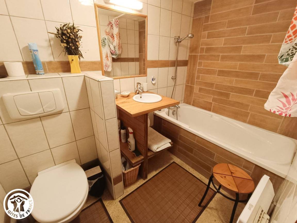 „Gîte spacieux, bien équipé, beau jardin avec vaste piscine à débordement Propriétaires très accueillants et prêts à rendre service À proximité de nombreux sites dans cette superbe région Point négatif: Ménage insuffisant à notre arrivée À noter une maison très bien restaurée mais assez sombre“