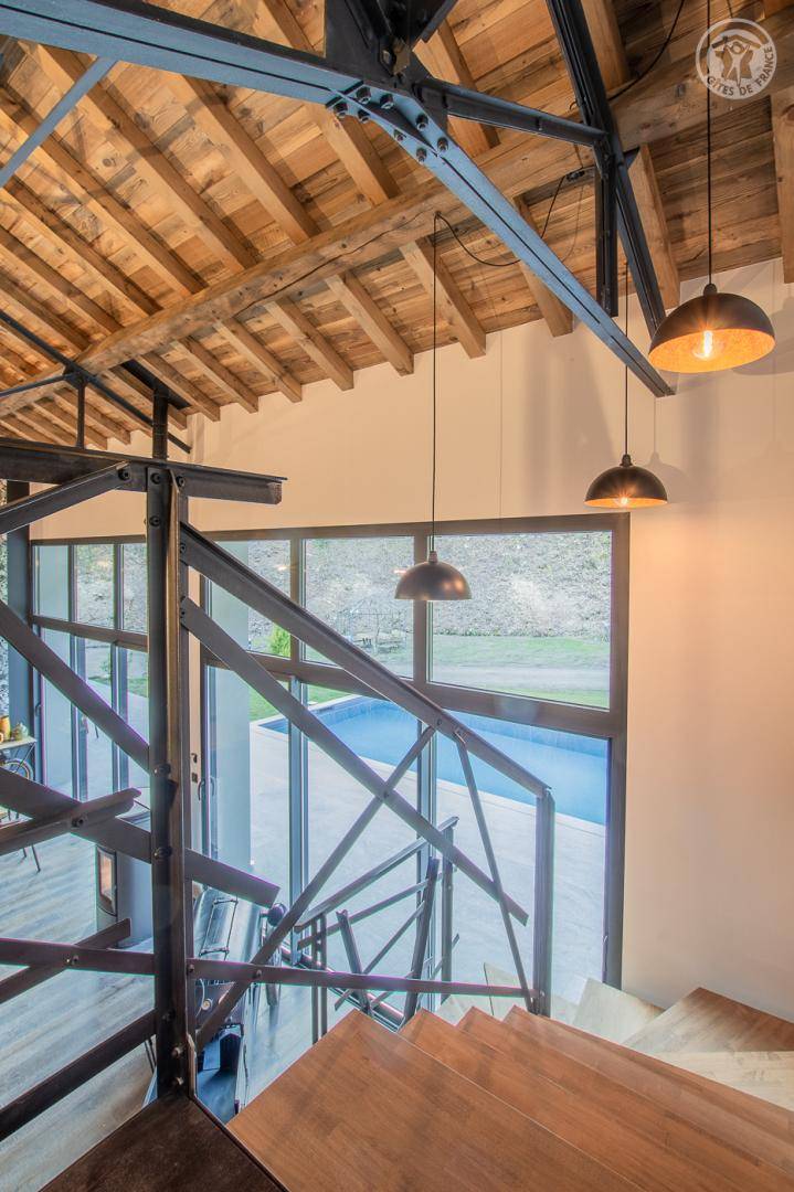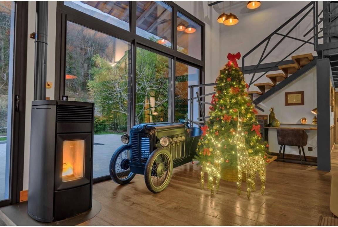 Einfamilienhaus auf 2 Ebenen. Erdgeschoss: Wohnzimmer-Küche-Lounge, angeschlossener Fernseher, Glasfaser-Internetanschluss, Soundbar, Pelletofen (manuelle Befüllung), 1 Schlafzimmer (2 Einzelbetten 90 x 190 cm und 1 Doppelbett 160 x 200 cm) mit eigenem Bad (Dusche und WC) , 2 Schlafzimmer (1 Doppelbett 160x200 cm / 1 Doppelbett 160x200 cm), ein Badezimmer, separates WC mit Waschbecken. Obergeschoss: 3 Schlafzimmer (3 Doppelbetten 160x200 cm), ein Duschbad (Dusche und Badewanne, 2 Waschbecken), separates WC. Elektrische Rollläden. Terrasse mit Swimmingpool (8m x 4m x 1,40m), Spa, Land mit Bach. Ladesteckdose für Elektrofahrzeug.