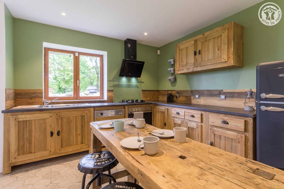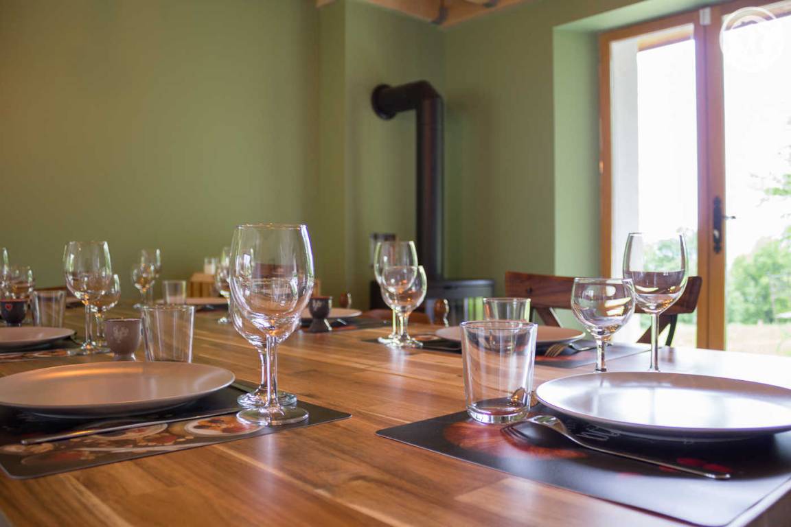 Haus auf 2 Ebenen , einschließlich der im Erdgeschoss: Wohnzimmer-Küche (Gasherd mit Backofen und 4 Kochplatten), einem Wohnbereich (Bluetooth - Lautsprecher), ein Badezimmer ( ebenerdiger Dusche und 2 Waschbecken), separates WC. Obergeschoss: 2 Schlafzimmer (1 Doppelbett 140 x 190 cm pro Schlafzimmer), ein Zwischengeschoss mit Platz im Wohnzimmer (2 ausziehbare Einzelschlafsofas, umwandelbar in 2 Doppelbetten 160 x 200 cm). Terrasse und Grundstück mit Holz- oder Holzkohlegrill. Parkplatz mit Unterstand für ein Auto. Holzofen. Strom durch Photovoltaik-Paneele, die von einem Generator übernommen werden. Unkontrolliert fließendes Wasser für Geschirr und Dusche. Bereitstellung von Mineralwasserflaschen zum Verzehr bei Anreise (Auffüllung auf Ihre Kosten während des Aufenthalts)