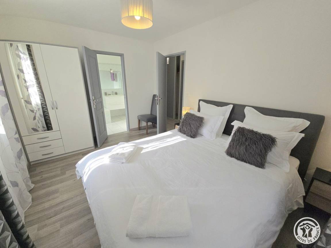 „L'hôtesse nous a accueillis avec un cadeau et beaucoup de gentillesse. Elle a été très réactive à toutes nos demandes. le gîte correspondait totalement à l'annonce. mention spéciale pour la piscine pour cette semaine caniculaire et les équipements. encore merci. nous le recommandons chaleureusement“