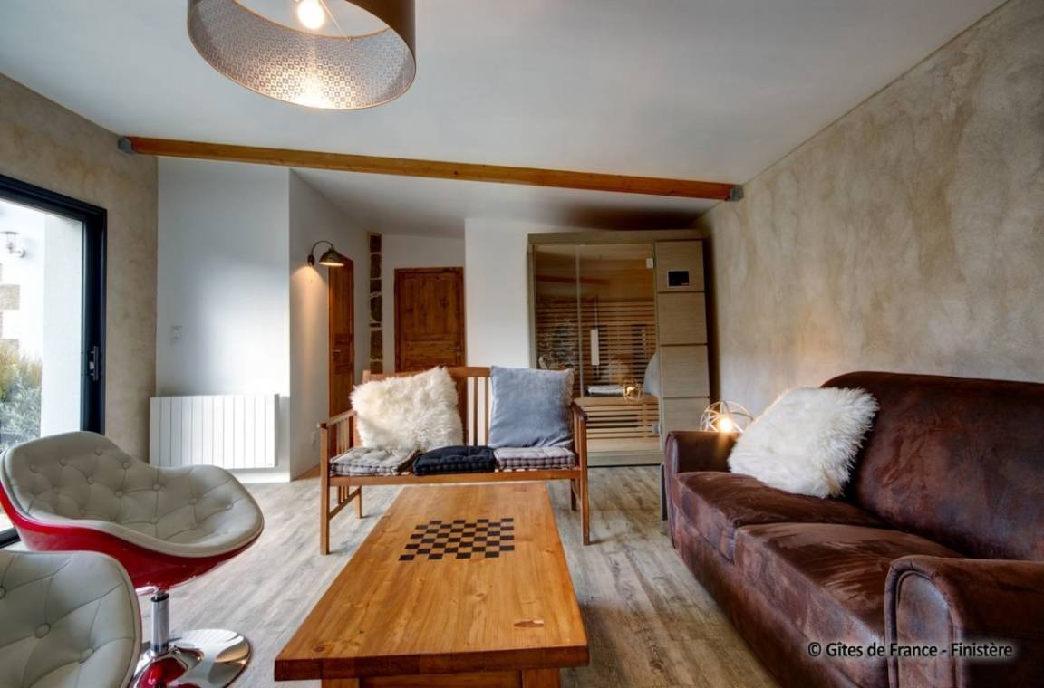 „Séjour conforme à la description, idéal pour se reposer, profiter des balades en bord de mer, manger de très bonnes crêpes dans les restaurants de la pointe ou du Conquet. Jacuzzi, sauna, baby-foot, ping-pong, jeux de cartes ont agrémenté nos soirées. Les enfants ont bien aimé jouer avec Riboul, un chien très gentil qui adore jouer avec un bâton.“