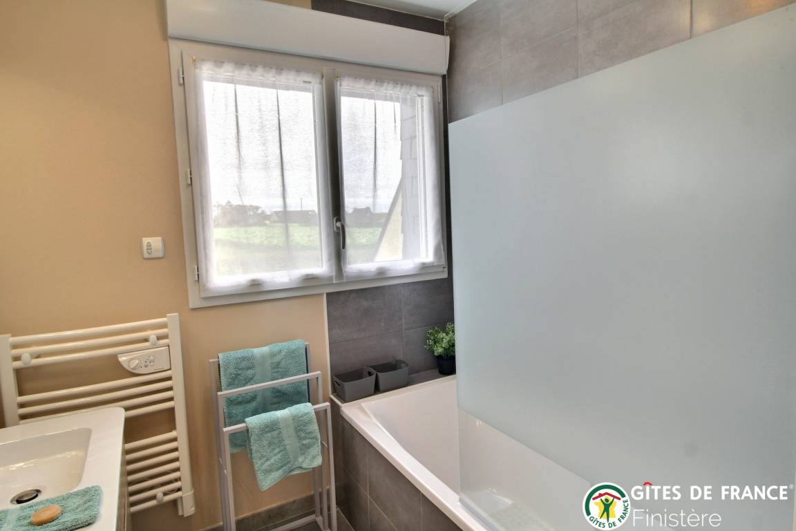 „Comme l'année précédente excellent accueil des propriétaires, panier de légumes et cidre en cadeau de bienvenue. Gîte très joliment décoré avec vue sur la mer et les îles. Le GR au bout du champ. Vente de fruits et légumes, épicerie fine, fromages...sur place. A recommander.“