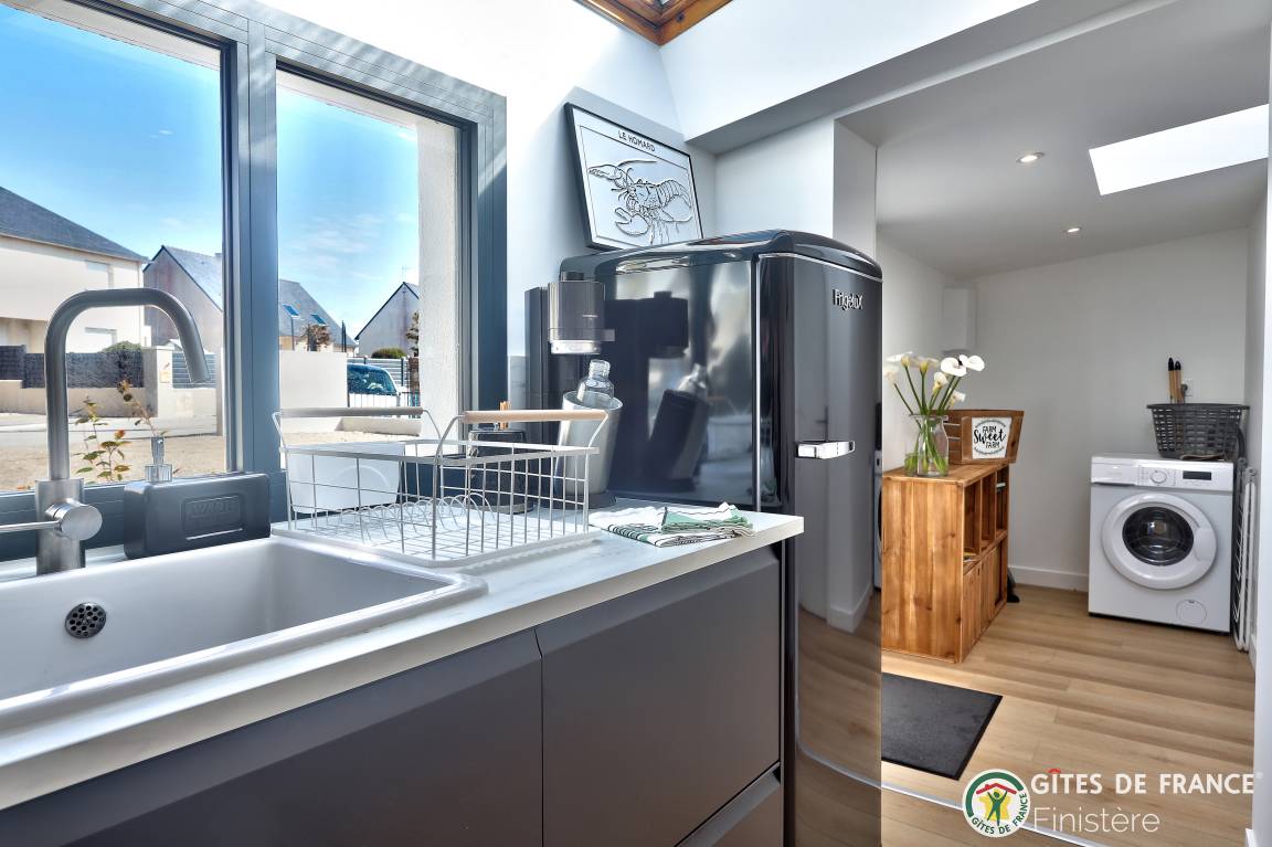 „Nous avons passé un très bon séjour dans ce logement. Sylvie nous accueilli avec le sourire. Le lit très confortable, intérieur cosy, cuisine équipée. Et bien sûr, beauté de la mer d'iroise.“