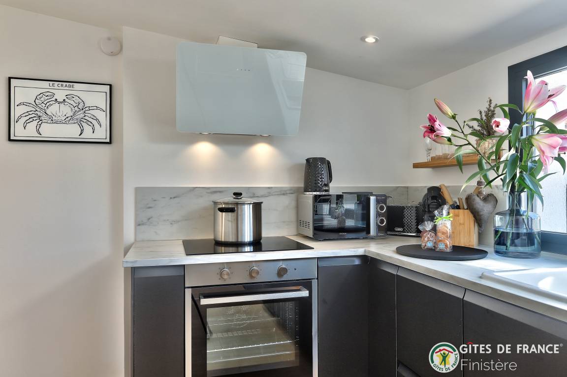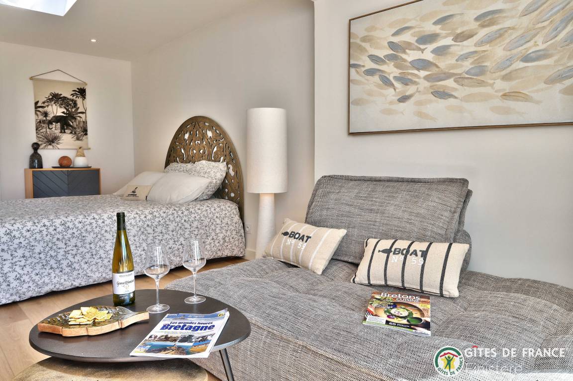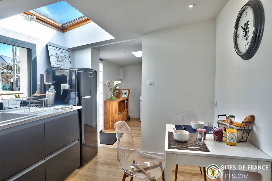 „Le gite est bien agencé, calme, confortable, assez joliment décoré. Salle de bain très bien. Cuisine assez bien et moderne. Avec une terrasse avec vue mer. La nuit, on peut voir le phare de la pointe Saint Mathieu à quelques km, cela a son charme: On sait qu'on est à côté de la mer d'Iroise“
