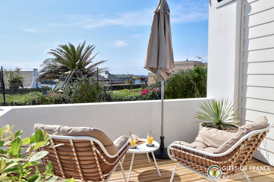 „Gite situé dans un lieu calme dont la terrasse nous offre une magnifique vue sur la Pointe St Matieu avec son Phare. Intérieurement: Très bien agencé et décoré.“