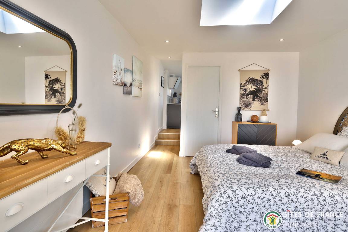 „Tous les ingrédients étaient réunis pour passer une semaine parfaite, logement très confortable, fonctionnel,décoré avec goût et un accueil chaleureux de notre hôte. Le gîte est idéalement situé. Nous reviendrons.“