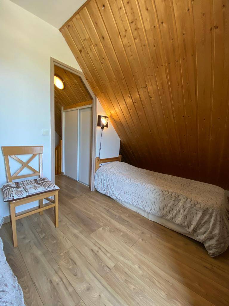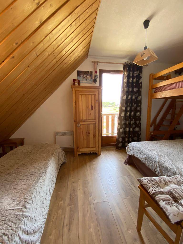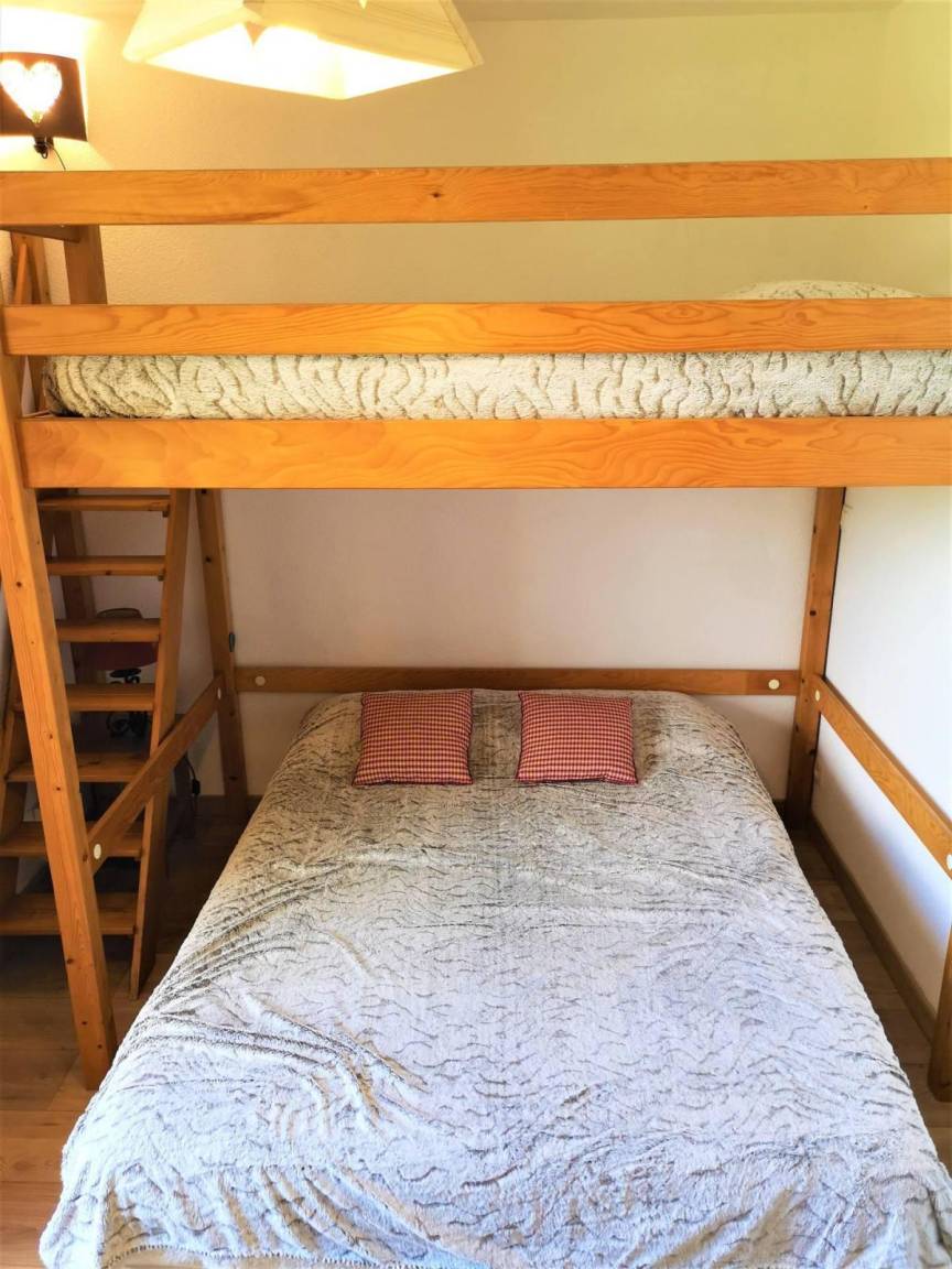 Fläche von ungefähr 43 m². Orientierung : Süd. Blick berg. Wohnzimmer. Schlafzimmer mit Einzelbett, 2 Stockbetten (140). Schlafzimmer mit Doppelbett. Kochnische mit Wasserkocher, Kaffeemaschine, Dunstabzugshaube, Geschirrspülmaschine, Mikrowellenherd, Glaskeramikkochfelder, Kühl-Gefrier-Kombination. separates WC. Badezimmer mit Badewanne. Terrasse mit Gartentisch und -stühle. Die oberen Betten sind nicht für Kinder unter 6 Jahren geeignet.
