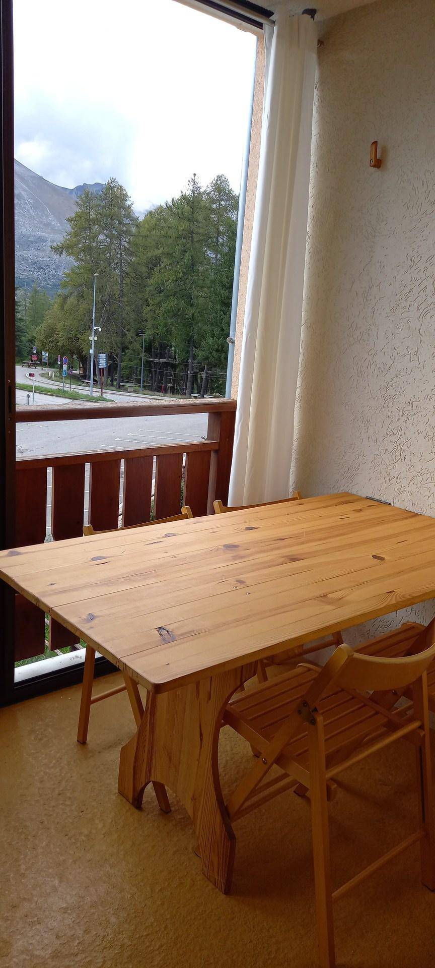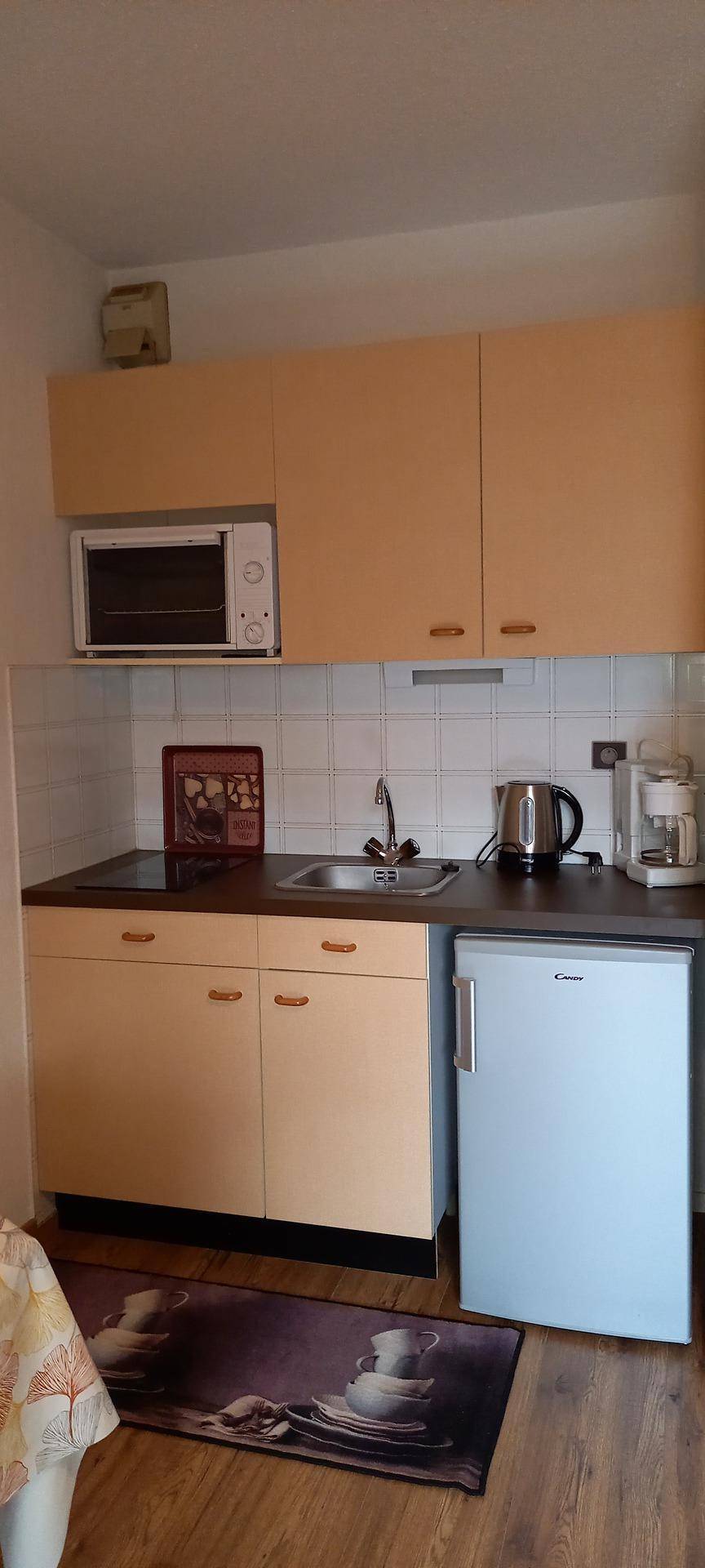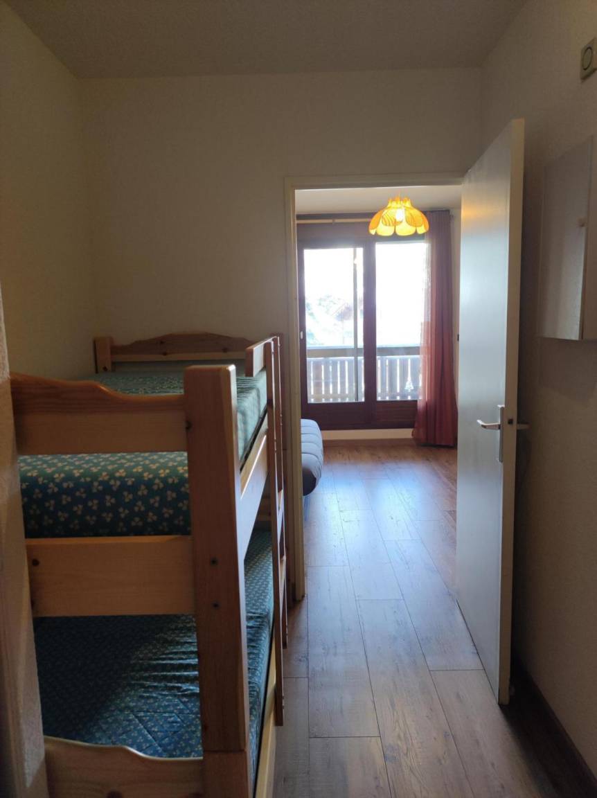 Fläche von ungefähr 27 m². 2te Etage. Orientierung : Süd, Süd-West, West. Wohnzimmer mit Klappschlafcouch (140). offener Schlafbereich mit 2 Stockbetten. Kochnische mit Wasserkocher, Kaffeemaschine (filtres), kleiner Backofen mit Mikrowellenfunktion, Toaster, kleiner Backofen, 2 Glaskeramikkochfelder, Kühl-Gefrier-Kombination. Badezimmer. separates WC. Veranda mit Tisch. Balkon. Die oberen Betten sind nicht für Kinder unter 6 Jahren geeignet.
