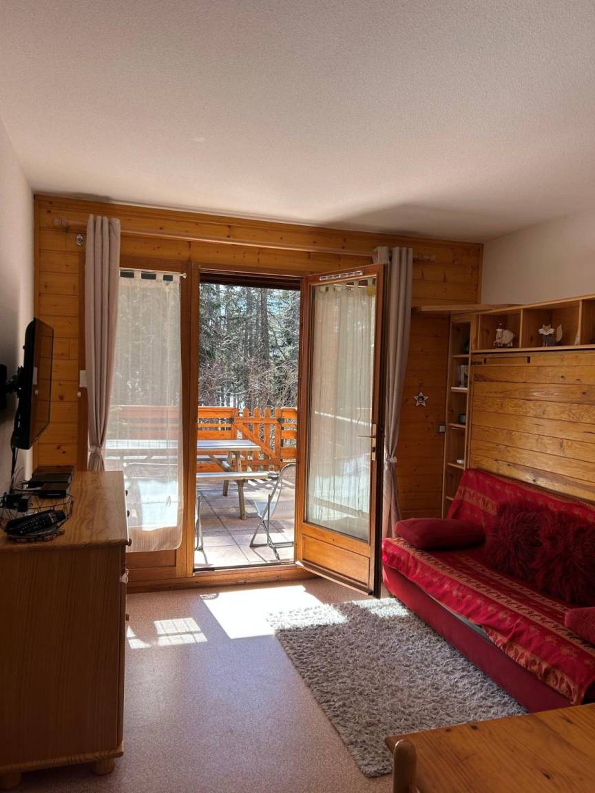 Die Résidence Les Rochers Blancs 3 (4 Etagen) befindet sich im Herzen des Skigebiets Joue du Loup. Die Apartments für bis zu 10 Personen verfügen alle über einen Balkon. Sie liegt in der Nähe von Geschäften und Restaurants und weniger als 100 m von den Pisten entfernt. Fläche von ungefähr 24 m². Erdgeschoss. Orientierung : West. Wohnzimmer mit Klappschlafcouch. offener Schlafbereich mit 2 Stockbetten. Kochnische mit Fonduegerät, Raclettegerät, Wasserkocher, Kaffeemaschine (nespresso ), Toaster, Geschirrspülmaschine, Mikrowellenherd, Mixer, 2 elektronische Herdplatten, Kühlschrank. Waschräume mit Haartrockner. separates WC. Terrasse mit Gartentisch und -stühle. Staubsauger, Bügeleisen. Die oberen Betten sind nicht für Kinder unter 6 Jahren geeignet.