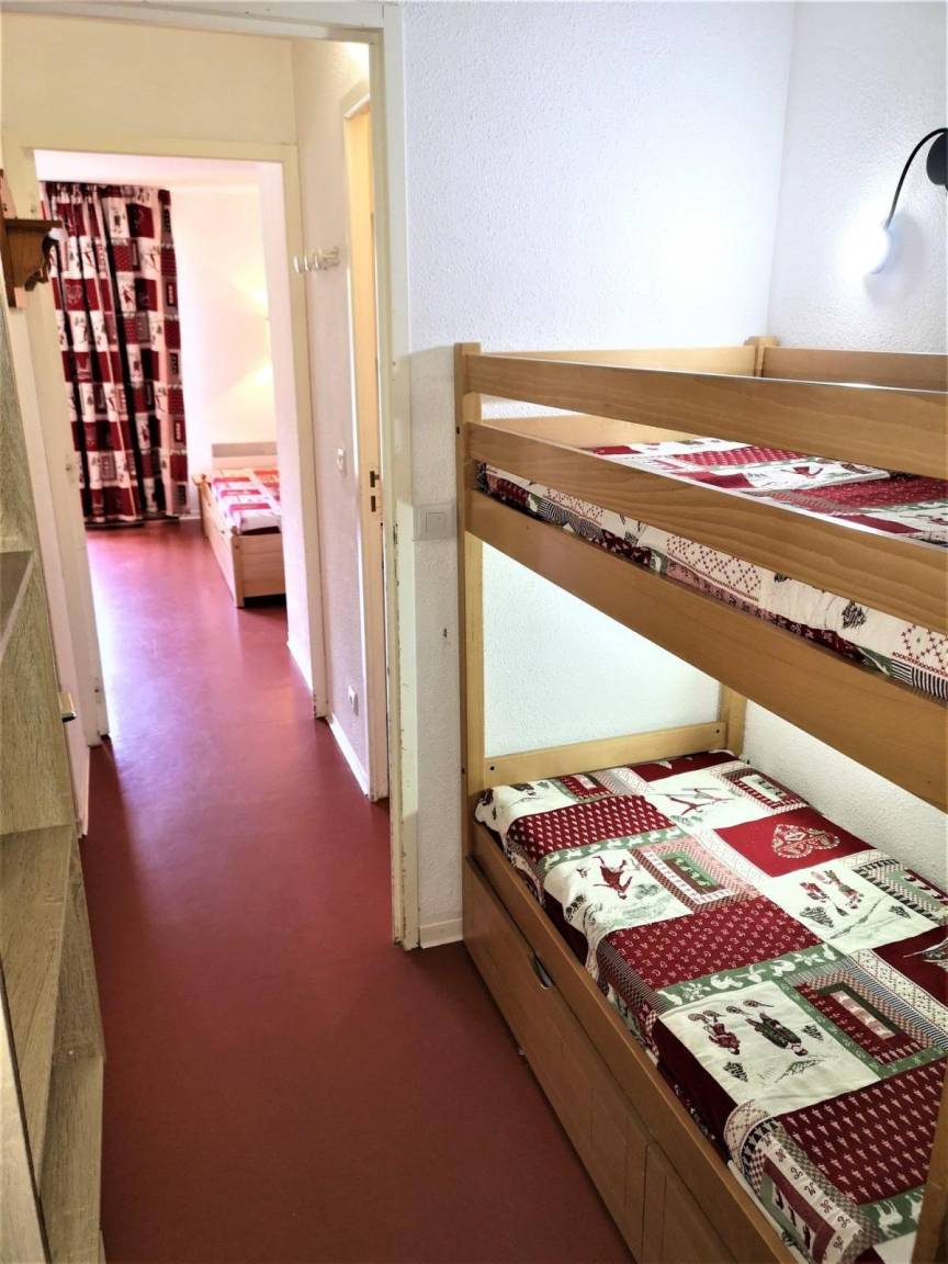 Fläche von ungefähr 35 m². 1te Etage. Orientierung : Ost, Süd-Ost, Süd. Wohnzimmer mit Ausziehschlafcouch für 2 Personen. Schlafzimmer mit Doppelbett. offener Schlafbereich mit 2 Stockbetten. Kochnische mit Raclettegerät, Wasserkocher, Kaffeemaschine (filtre), Geschirrspülmaschine, Mikrowellenherd, kleiner Backofen, 2 Glaskeramikkochfelder, Kühlschrank. separates WC. Badezimmer mit Badewanne. Balkon. Die oberen Betten sind nicht für Kinder unter 6 Jahren geeignet.