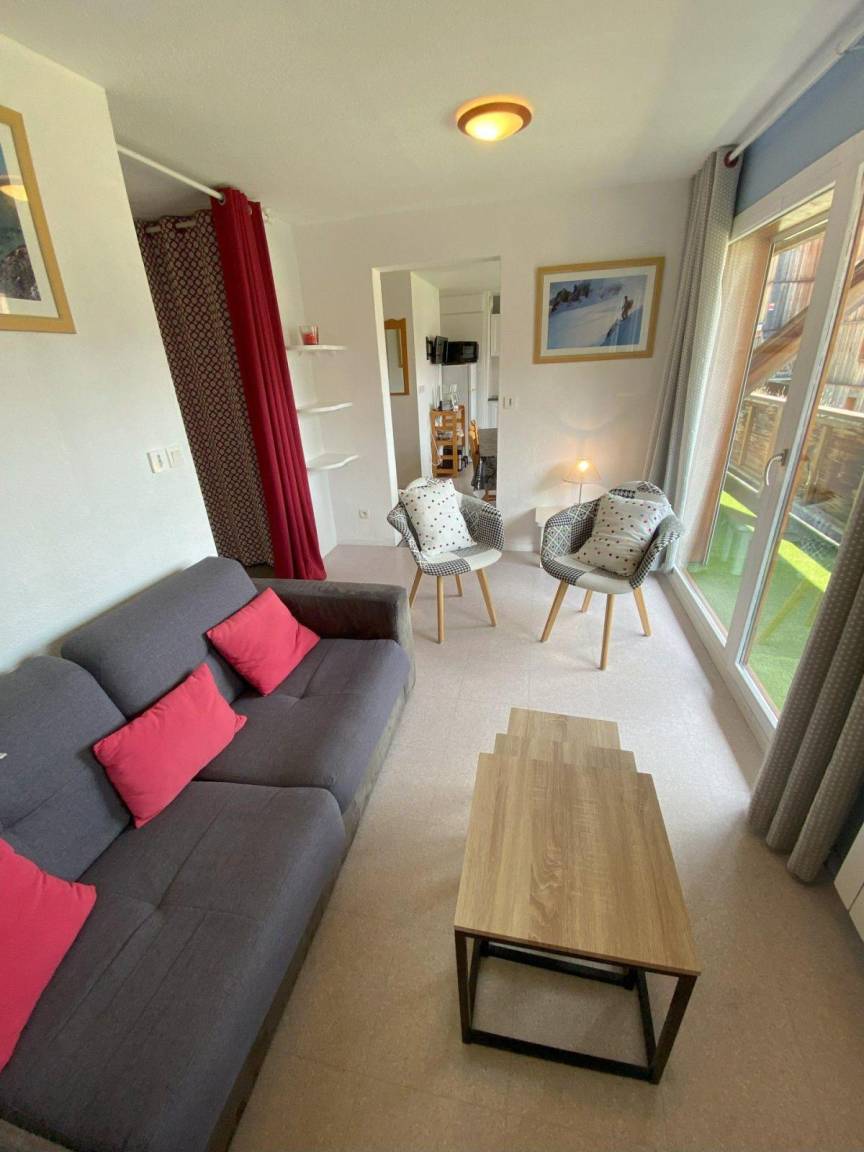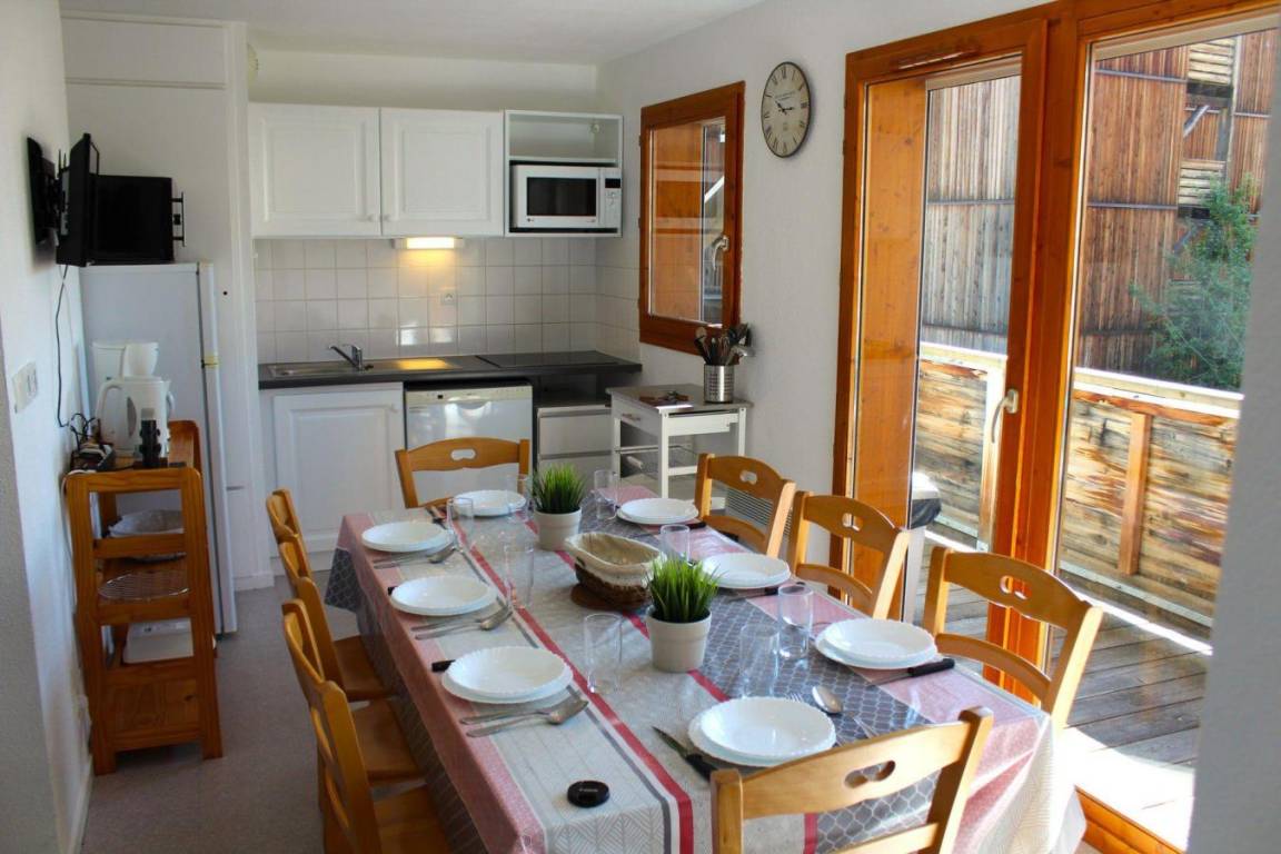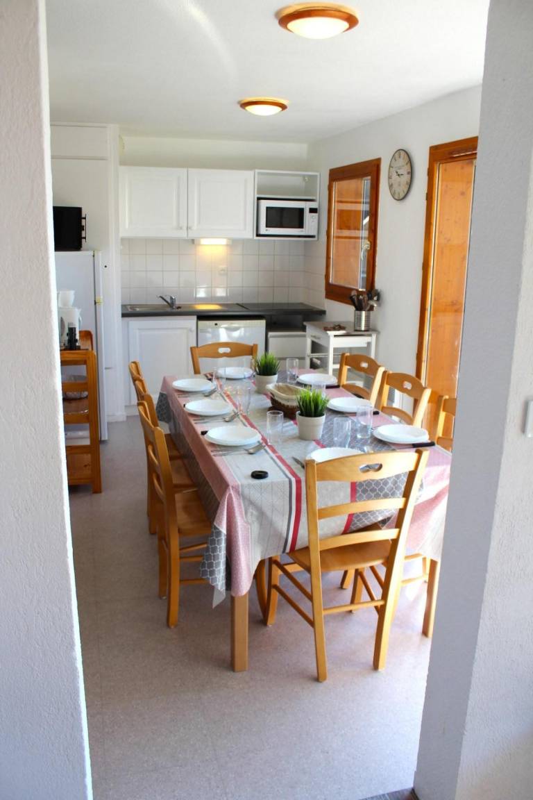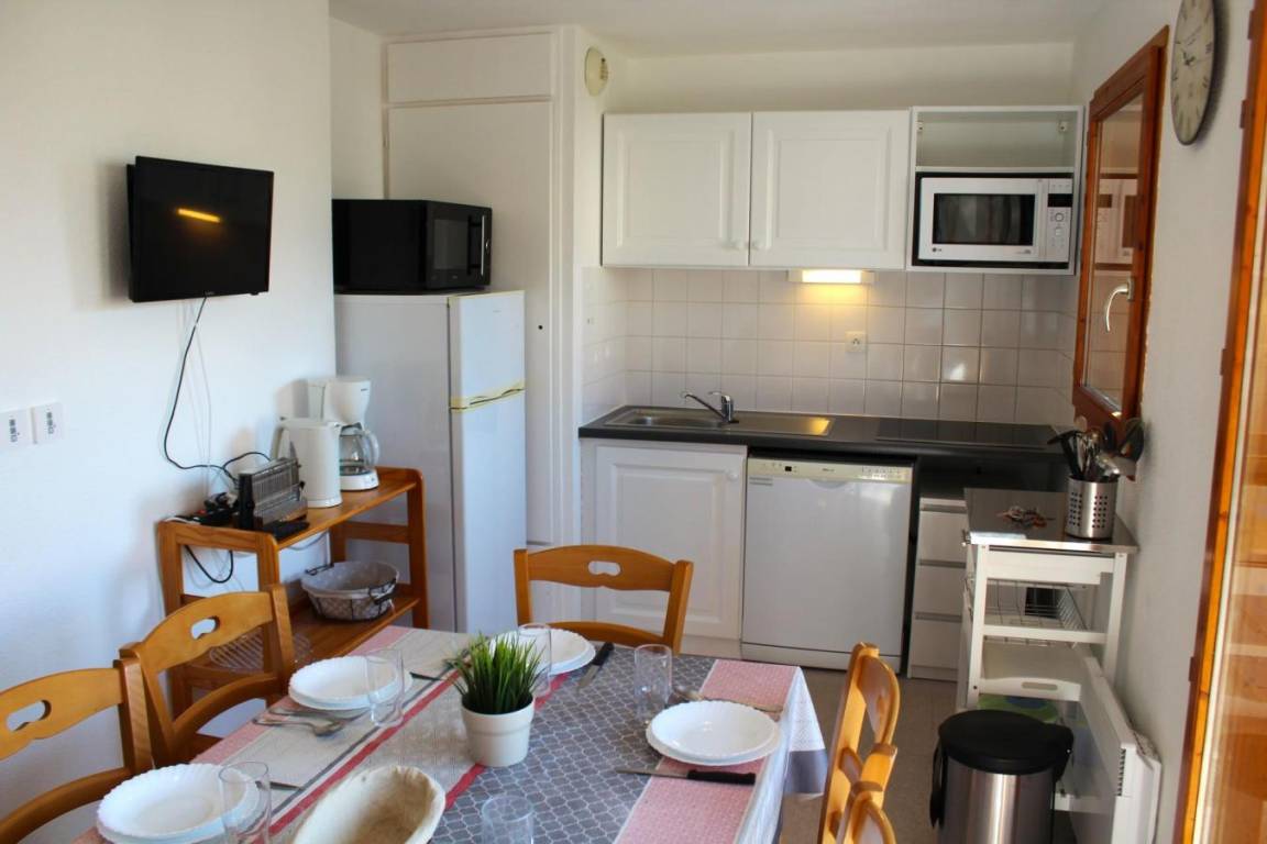 Fläche von ungefähr 62 m². 2te Etage. Orientierung : Süd. Blick berg. Wohnzimmer mit 2 Ausziehbetten. Schlafzimmer mit 2 zwei Einzelbetten. offener Schlafbereich mit 2 Stockbetten. Kochnische mit Wasserkocher, Kaffeemaschine (filtre), kleiner Backofen mit Mikrowellenfunktion, Toaster, Geschirrspülmaschine, 2 Induktionsherdplatten, Kühlschrank. Badezimmer mit Badewanne, Handtuchtrockner. separates WC. Balkon. Die oberen Betten sind nicht für Kinder unter 6 Jahren geeignet.
