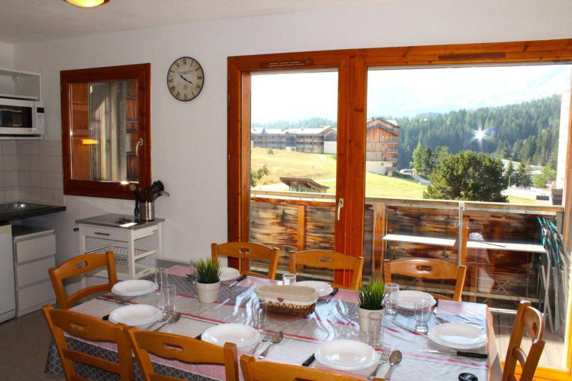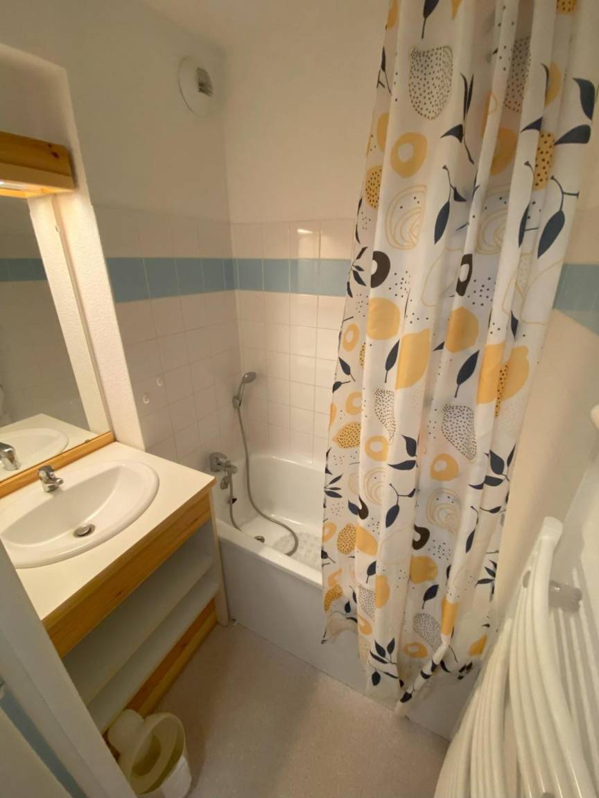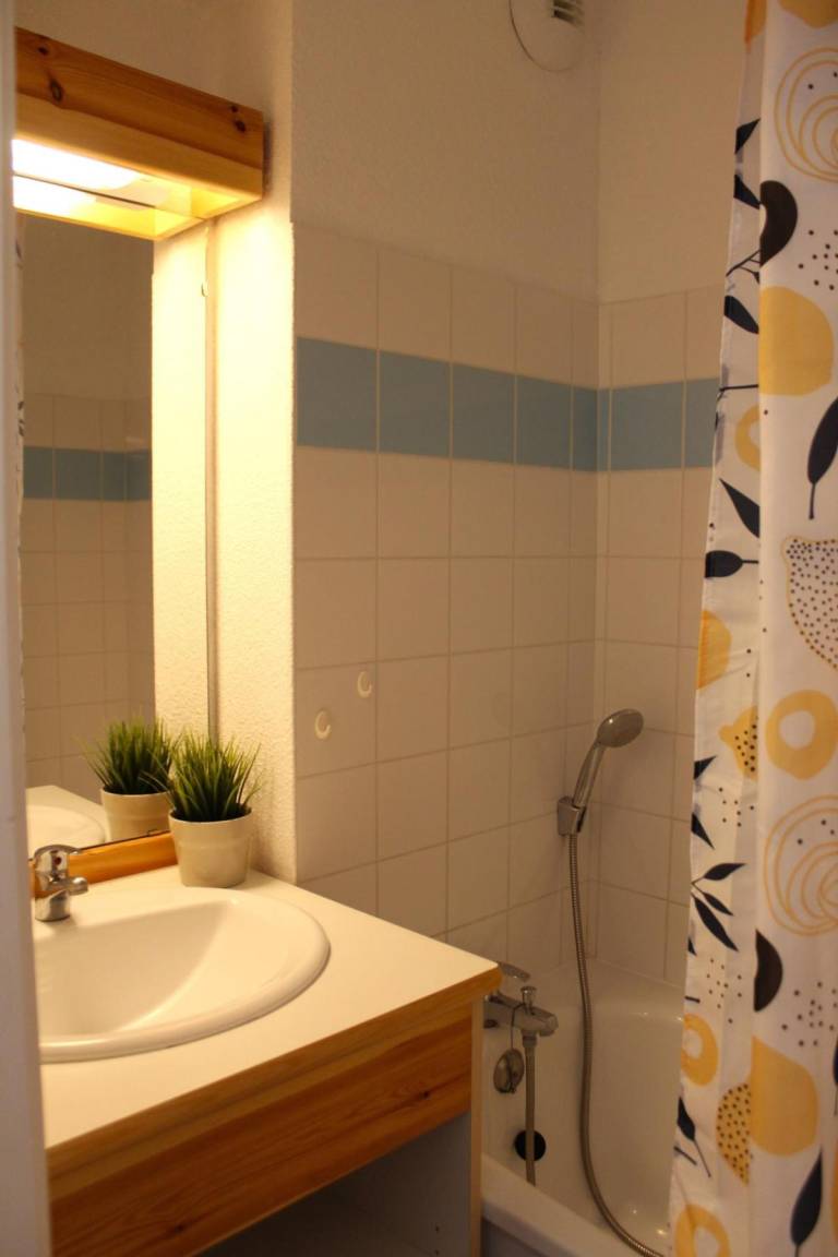 Fläche von ungefähr 62 m². 2te Etage. Orientierung : Süd. Blick berg. Wohnzimmer mit 2 Ausziehbetten. Schlafzimmer mit 2 zwei Einzelbetten. offener Schlafbereich mit 2 Stockbetten. Kochnische mit Wasserkocher, Kaffeemaschine (filtre), kleiner Backofen mit Mikrowellenfunktion, Toaster, Geschirrspülmaschine, 2 Induktionsherdplatten, Kühlschrank. Badezimmer mit Badewanne, Handtuchtrockner. separates WC. Balkon. Die oberen Betten sind nicht für Kinder unter 6 Jahren geeignet.