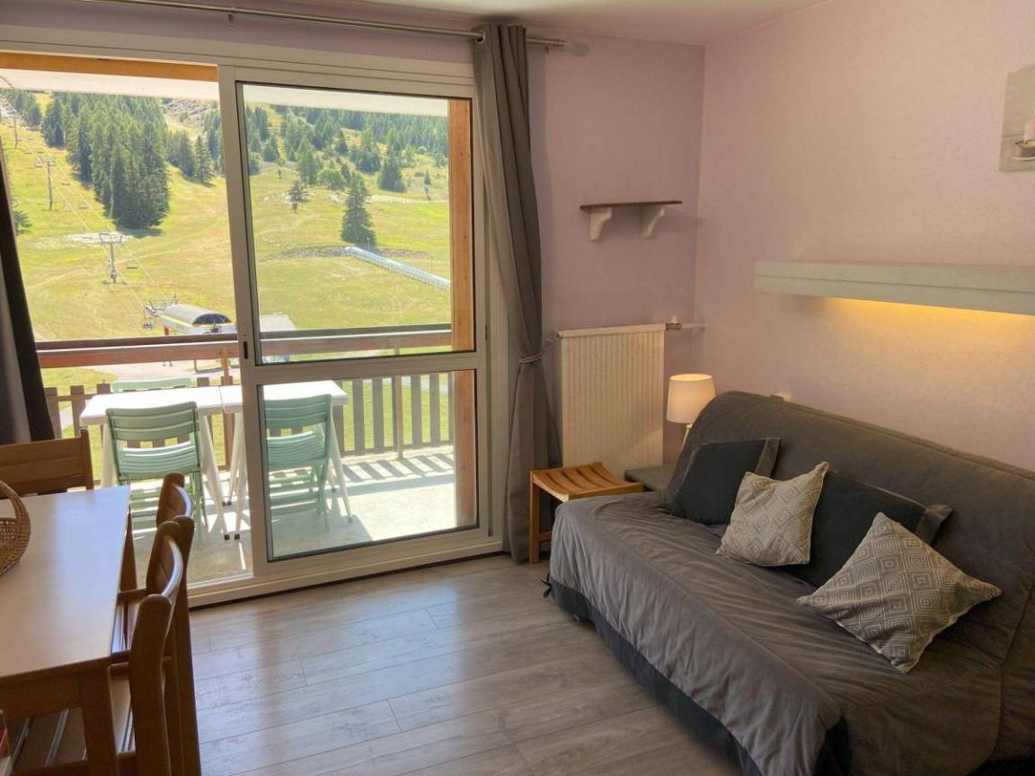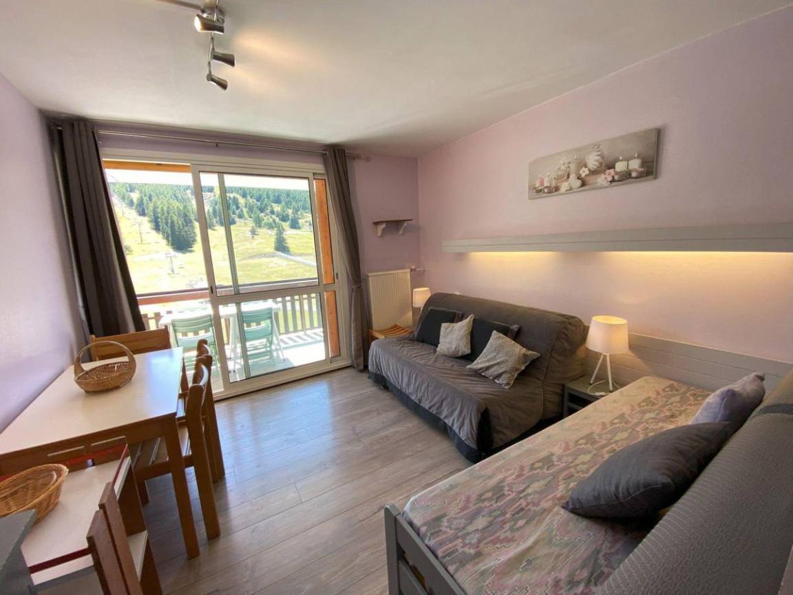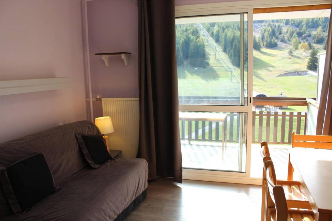 Fläche von ungefähr 28 m². 5te Etage. Orientierung : Süd. Blick berg (Pic de Bure). Wohnzimmer mit Klappschlafcouch. offener Schlafbereich mit 2 Stockbetten. Kochnische mit Wasserkocher, Kaffeemaschine (à filtre), Backofen, Geschirrspülmaschine, Mikrowellenherd, 2 elektronische Herdplatten, Kühlschrank. Waschräume mit Dusche, WC. Balkon. Die oberen Betten sind nicht für Kinder unter 6 Jahren geeignet.