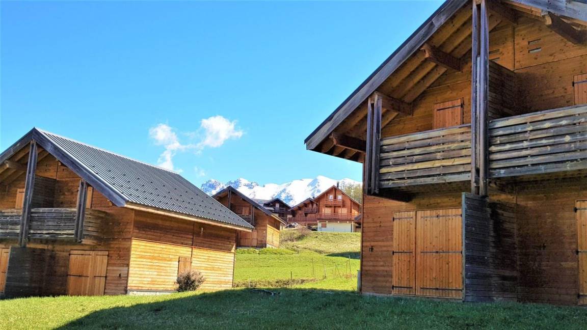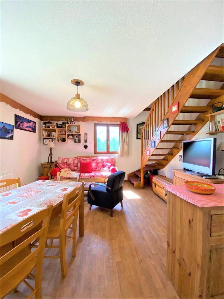 Fläche von ungefähr 55 m². Orientierung : West. Blick berg. Niveau 0 : Wohnzimmer mit Klappschlafcouch. offener Schlafbereich mit 2 Stockbetten. Kochnische mit Raclettegerät, Staubsauger, Kaffeemaschine (Senseo), Waschmaschine, Geschirrspülmaschine, Mikrowellenherd, elektronische Herdplatten, Kühlschrank. Badezimmer mit Dusche. separates WC. Terrasse mit Gartentisch und -stühle. Niveau 1 : 2 Schlafzimmer mit 2 Einzelbetten. Badezimmer mit Badewanne, Waschmaschine, WC. Die oberen Betten sind nicht für Kinder unter 6 Jahren geeignet.